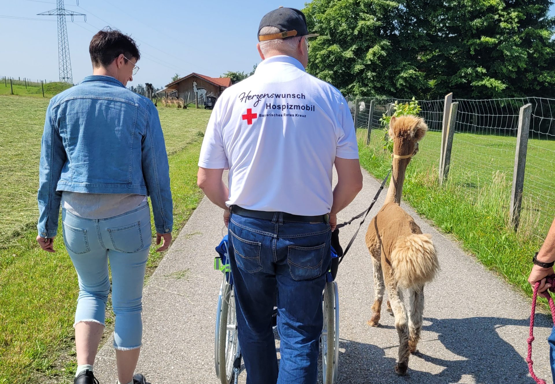 Rosenheim – Mit dem Rosenheimer BRK Herzenswunsch Hospizmobil ging es zum Kuscheln mit Alpakas. Der 66 Jahre alte Inge, die unter Krebs leidet, wurde damit der Wunsch erfüllt noch einmal einen Ausflug mit ihrer Tochter zu erleben.
