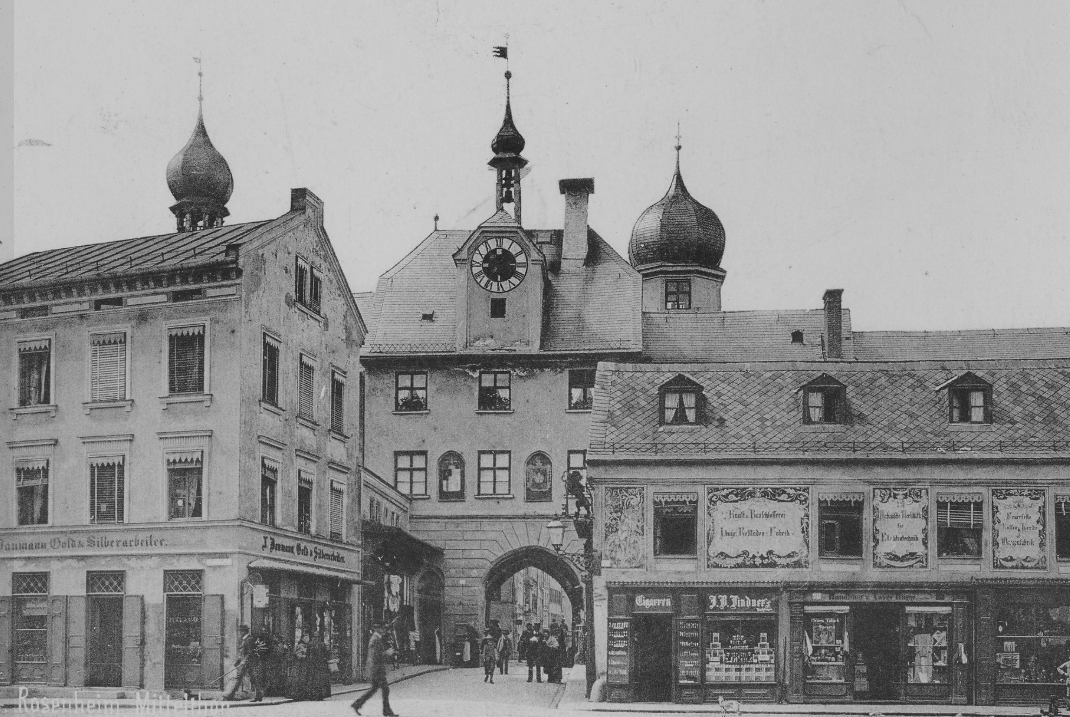 Mittertor in Rosenheim in der Zeit um ca. 1900. Foto: Archiv Herbert Borrmann