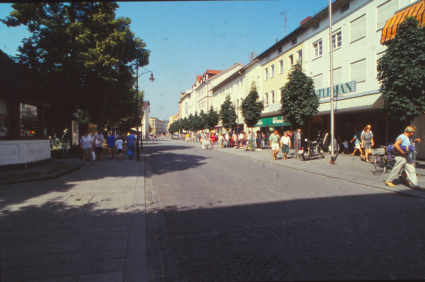 Rosenheim – Unsere fotografische Zeitreise geht heute zurück in die 1990er Jahre. Auf der alten Aufnahme zu sehen ist die Münchener Straße in Rosenheim.