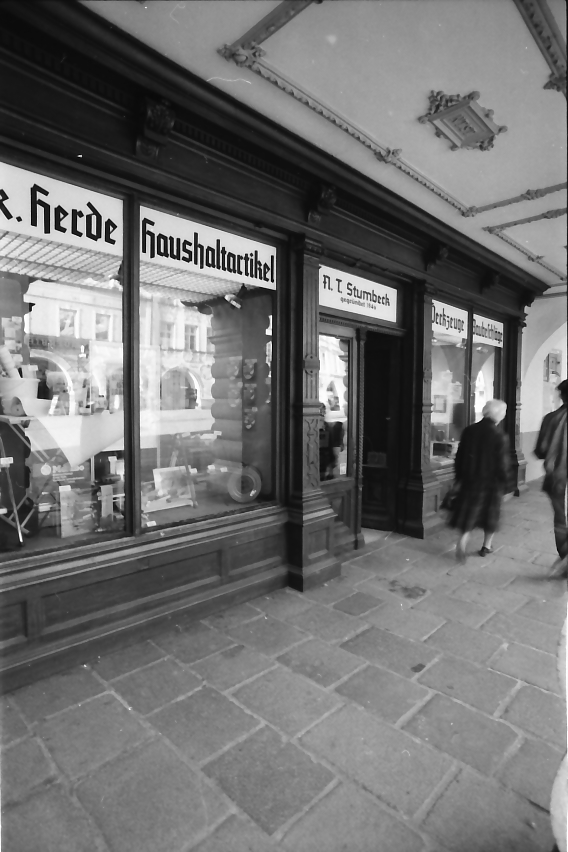 Rosenheim – Unsere fotografische Zeitreise geht heute zurück in die 1980er. Auf der alten Aufnahme zu sehen ist das Geschäft N.T. Stumbeck am Rosenheimer Max-Josefs-Platz.