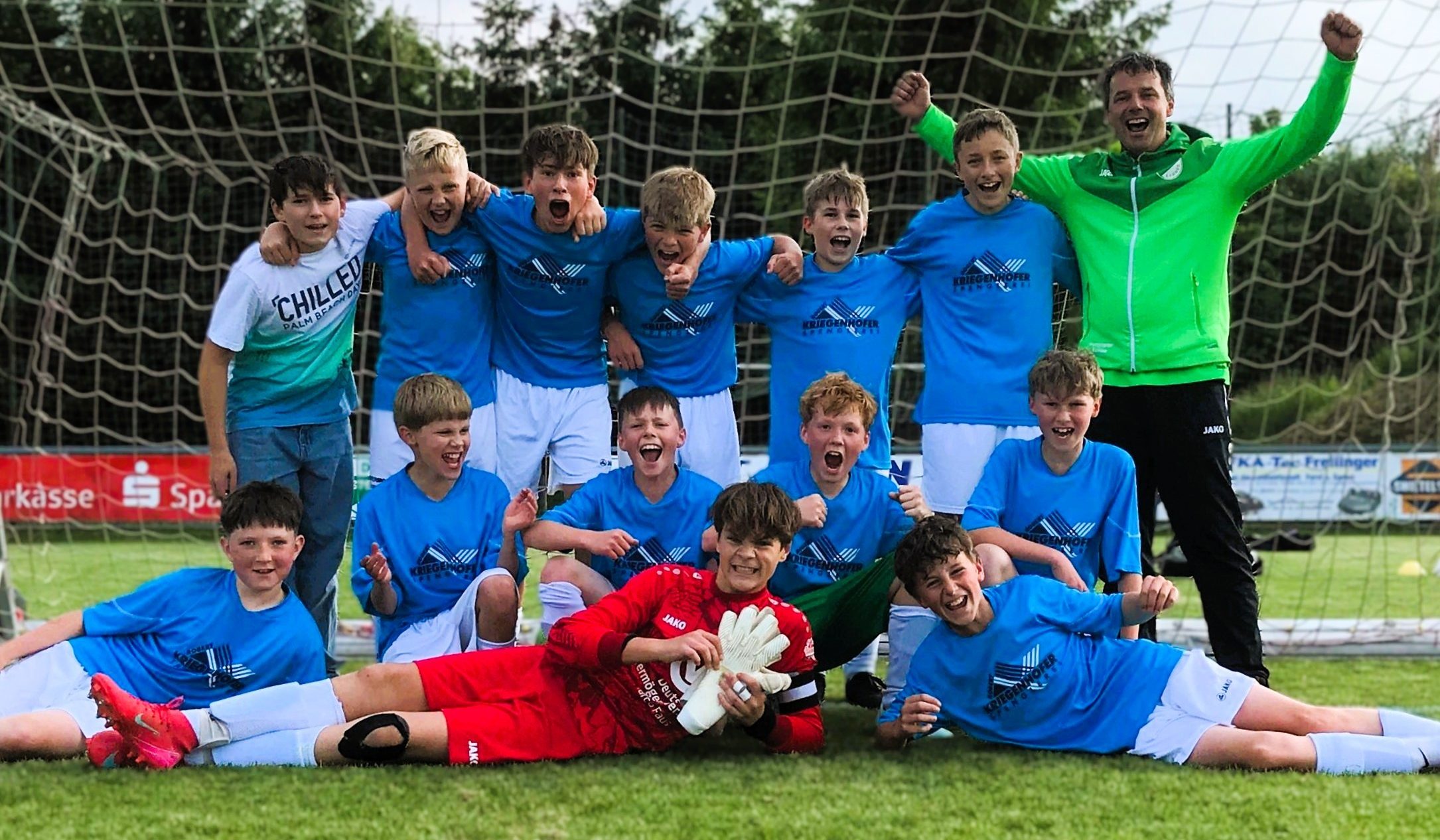 (Quelle: Pressemitteilung Traunstein Hubert Hobmaier / Beitragsbild: Die Kreisklasse riesig. Das erfolgreiche Team Tobias Lehr, Samuel Huber, Sam Lehr, Xaver Huber, Elias Mühlthaler, Benedikt Zellner und der Trainer Oliver Freinecker (hintere Reihe von links nach rechts), Dante Garbarino, Maximilian Brandstätter, Theo Buchauer, Lukas Gröbner (mittlere Reihe kniend von links nach rechts) und Maximilian Schuster, Matthias Schmiedl und Michael Freinecker holte 24 Punkte bei einem Torverhältnis von 29:6. Auf dem Bild fehlen Marlena Haase, Josef Sailer und Samuel Mühlthaler. Copyright Hubert Hobmaier)