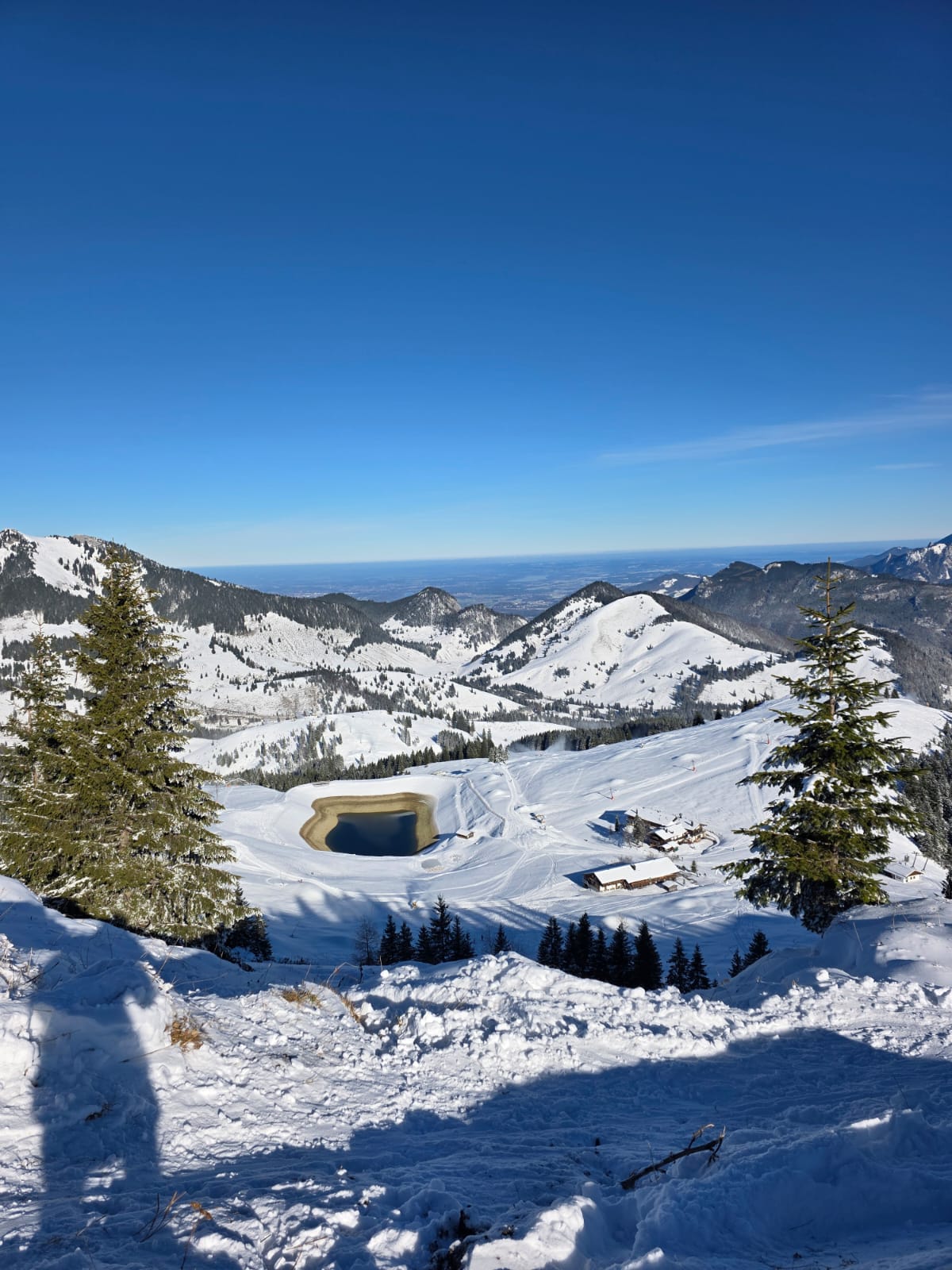 In den vergangenen Tagen wurde am Sudelfeld zusätzlich zum natürlichen Weiß auch intensiv beschneit. „Der Speichersee ist schon ziemlich ausgeschöpft“, berichtete uns eine Tourengeherin. Das Skigebiet wurde bereits 2014/2015 modernisiert, um schneesicherer zu werden. Damals entstanden ein großer Speichersee mit einem Fassungsvermögen von rund 155.000 Kubikmetern sowie rund 250 neue Schneekanonen. Sie sorgen dafür, dass die Pisten bereits zum Saisonstart in gutem Zustand sind.