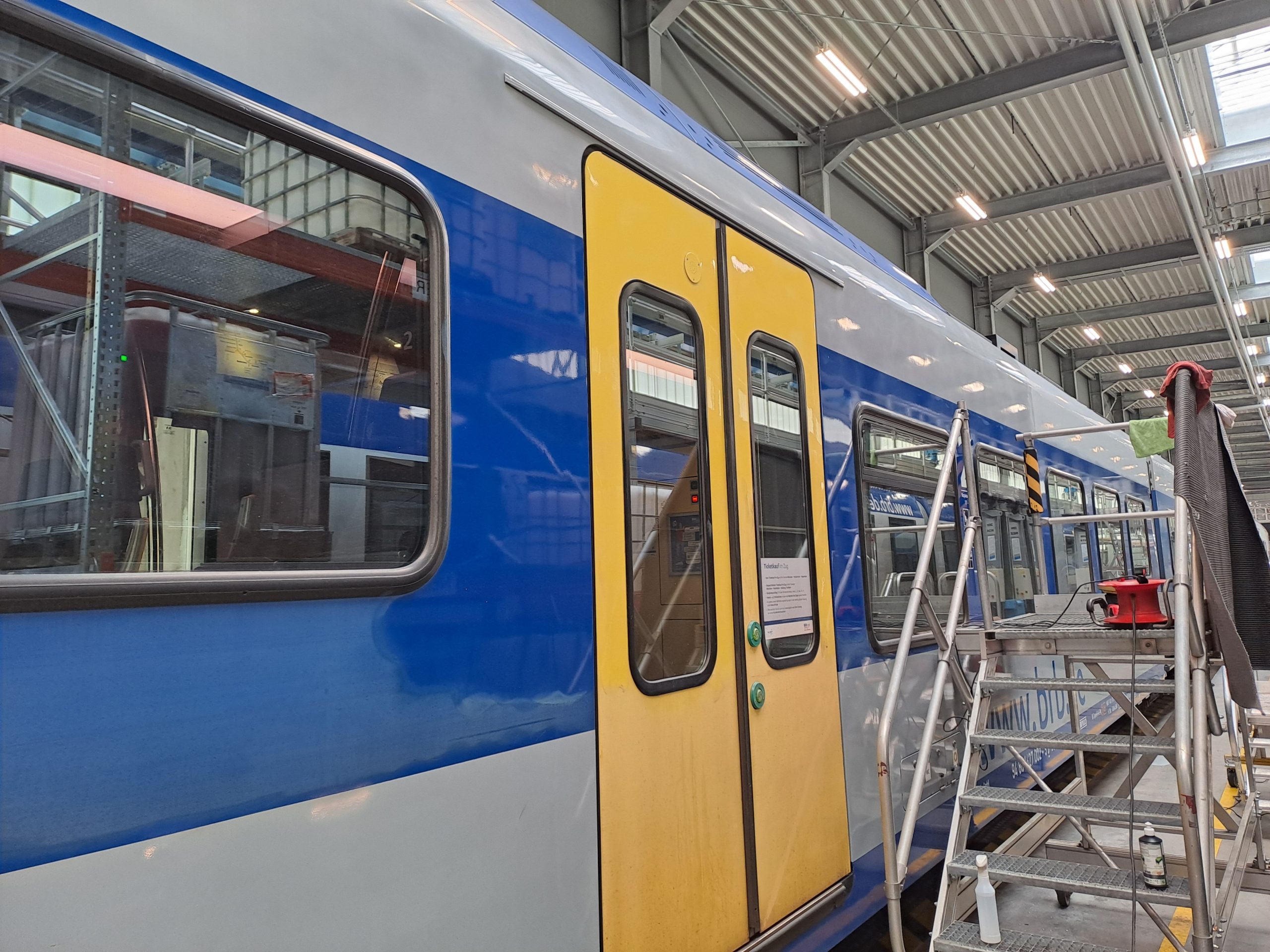 „Besonders Graffiti-Schmierereien setzen unseren Fahrzeugen zu“, ärgert sich BRB-Geschäftsführer Arnulf Schuchmann. „Heutzutage behandeln illegal arbeitende Sprayer die Oberflächen sogar mit Säure, damit die Graffitis besser halten. Das macht eine rückstandsfreie Entfernung schwer und greift den Lack extrem an.“ Bei einem der Fahrzeuge wurde der Lack inzwischen zum Test von einer darauf spezialisierten Firma aufbereitet. Mit dem Ergebnis ist der BRB-Geschäftsführer hochzufrieden: „Der Lack glänzt wieder und obendrein ist der Kostenunterschied zu einer Neulackierung enorm. Wir starten Anfang 2026, sofern wir den Anschlussvertrag für das Rosenheimer Kreuz gewinnen. Dann nehmen wir alle Fahrzeuge nacheinander aus dem Fahrgastbetrieb und zum Ende des kommenden Jahres werden die ersten aufgearbeiteten Fahrzeuge wieder im Netz Chiemgau-Inntal unterwegs sein.“ Unabhängig davon werden demnächst die Intervalle für die Außenwäsche der Fahrzeuge verkürzt.