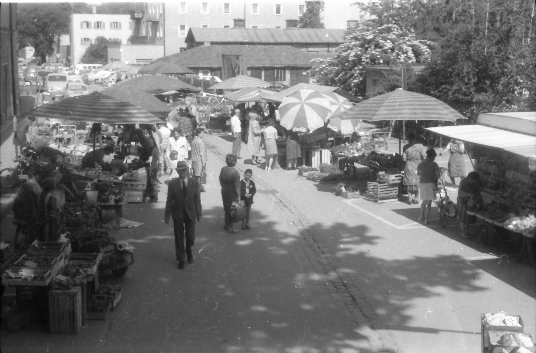 Auch heute noch gibt es in der Nikolaistraße in Rosenheim noch vereinzelt Marktstände, an denen Obst und Gemüse aus eigenem Anbau verkauft werden. Kein Vergleich aber zu dem Marktgeschehen dort in früheren Zeiten.