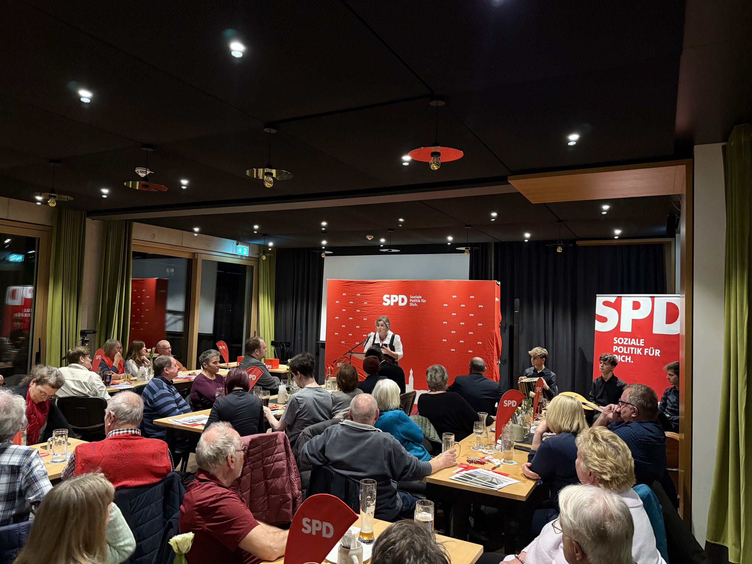 „Bleibt stabil, haltet dagegen, geht in die Diskussion – egal ob in der Arbeit, in der Familie oder in den Vereinen. Wir müssen klar machen, dass wir für eine vielfältige, offene Gesellschaft kämpfen. Die SPD hier vor Ort lebt, und wir werden nicht klein beigeben!“