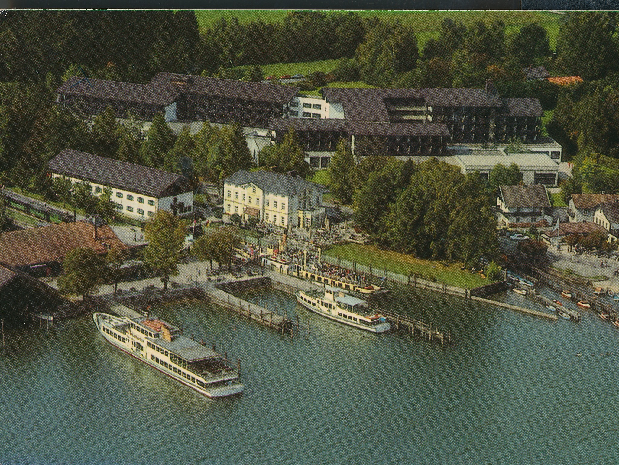 Prien / Landkreis Rosenheim – Unsere fotografische Zeitreise geht heute zurück in das Jahr 1989. Auf dem Fotooldie zu sehen ist Prien Stock am Chiemsee mit der Klinik St. Irmengard.