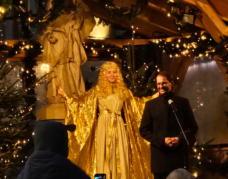 Sie eröffneten den Rosenheimer Christkindlmarkt: der Weihnachtsengel und Rosenheims Oberbürgermeister Andreas März. Fotos: Innpuls.me
