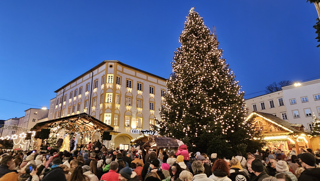 Nach dem Segensspruch des Weihnachtsengels folgte der Höhepunkt der Eröffnung: Der 14 Meter hohe Weihnachtbaum wurde feierlich beleuchtet – begleitet von vielen „Ahs“ und „Ohs“.