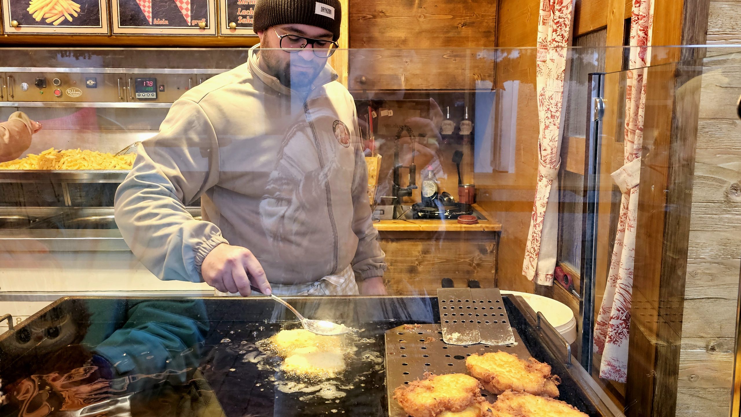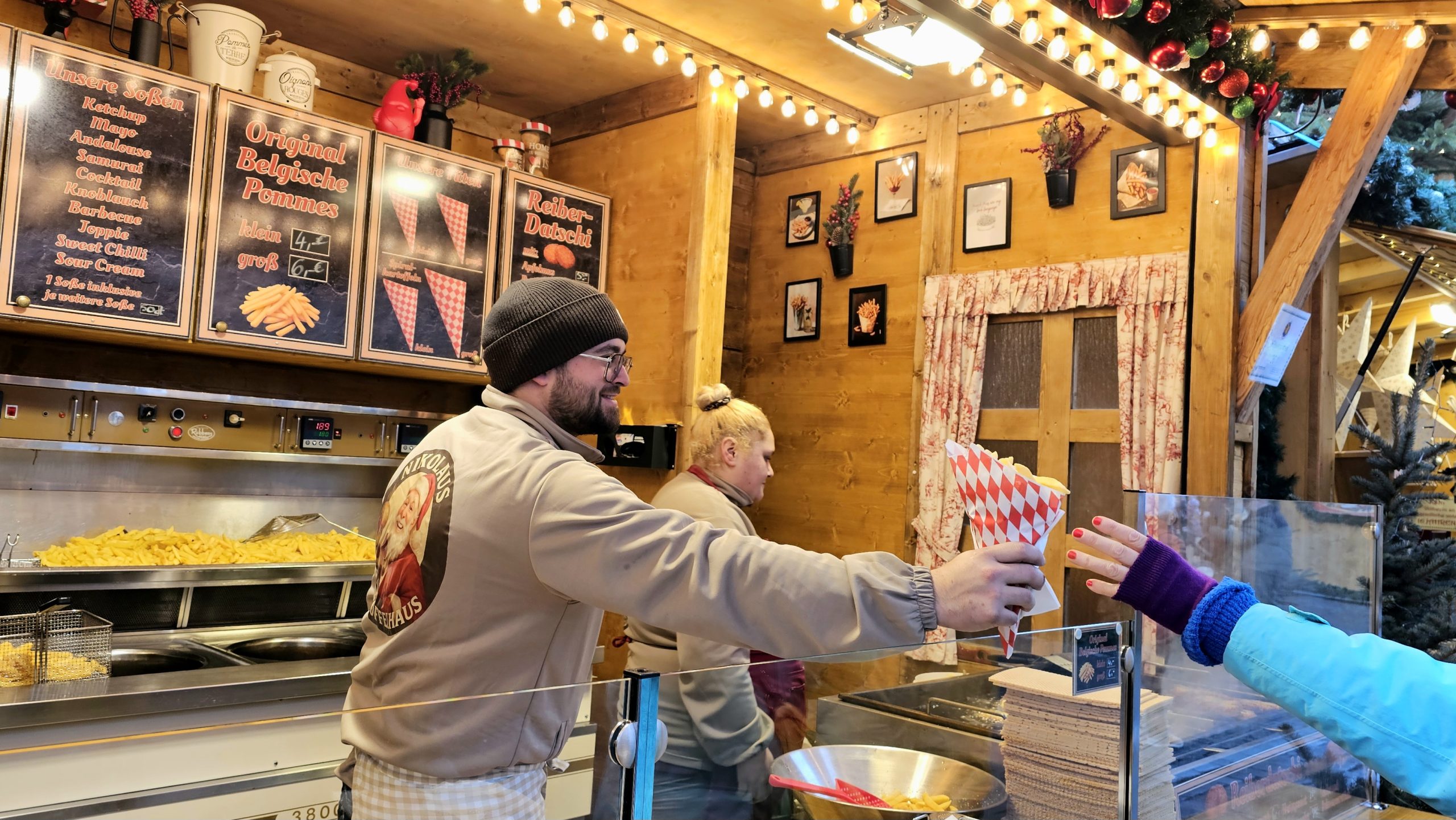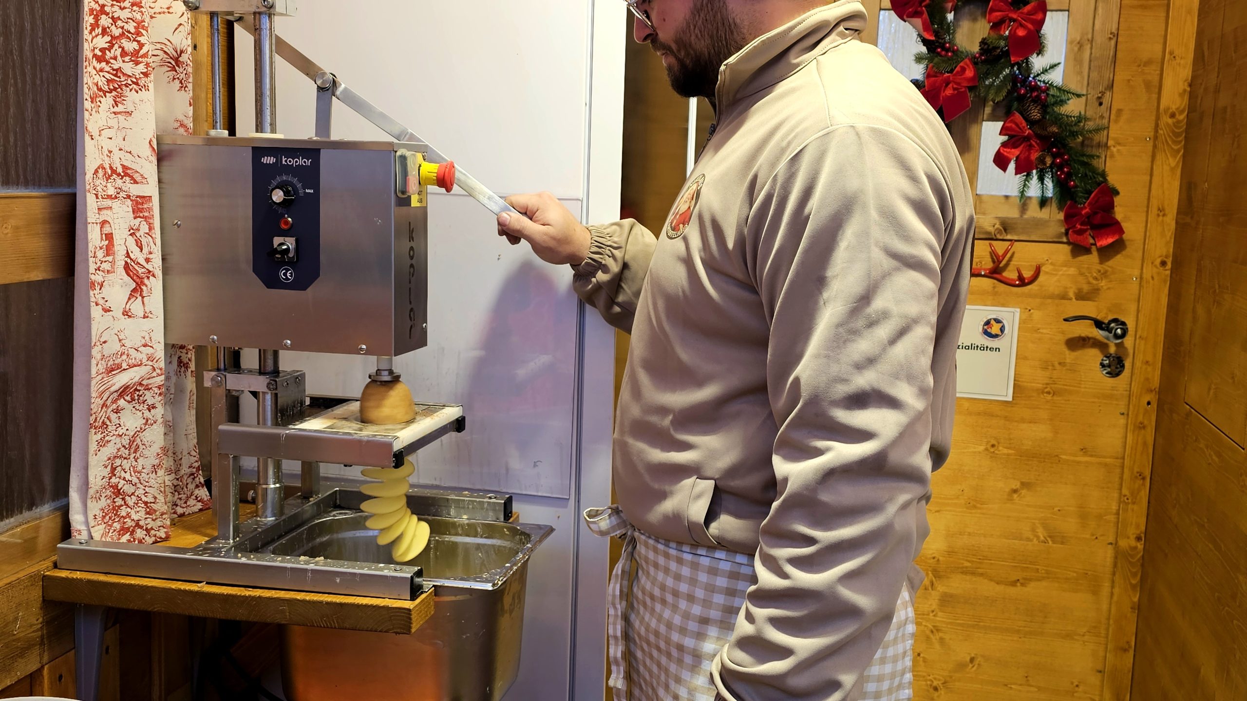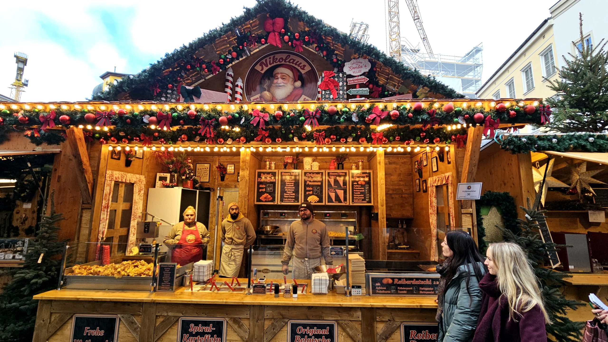 Neues Nikolaus-Kartoffel-Haus Zum dritten Mal dabei ist das Nikolaus-Kartoffel-Haus von Nino Hörländer, dieses Jahr im komplett neuen Stand. Investition: rund 80.000 Euro. Angeboten werden Chips, Belgische Pommes und Reiberdatschi. Hörländer ist sich sicher, dass dies eine gute Investition ist. Denn wie seine Eltern beim Schmalznudelstand ist er immer wieder gerne mit dabei beim Rosenheimer Christkindlmarkt.