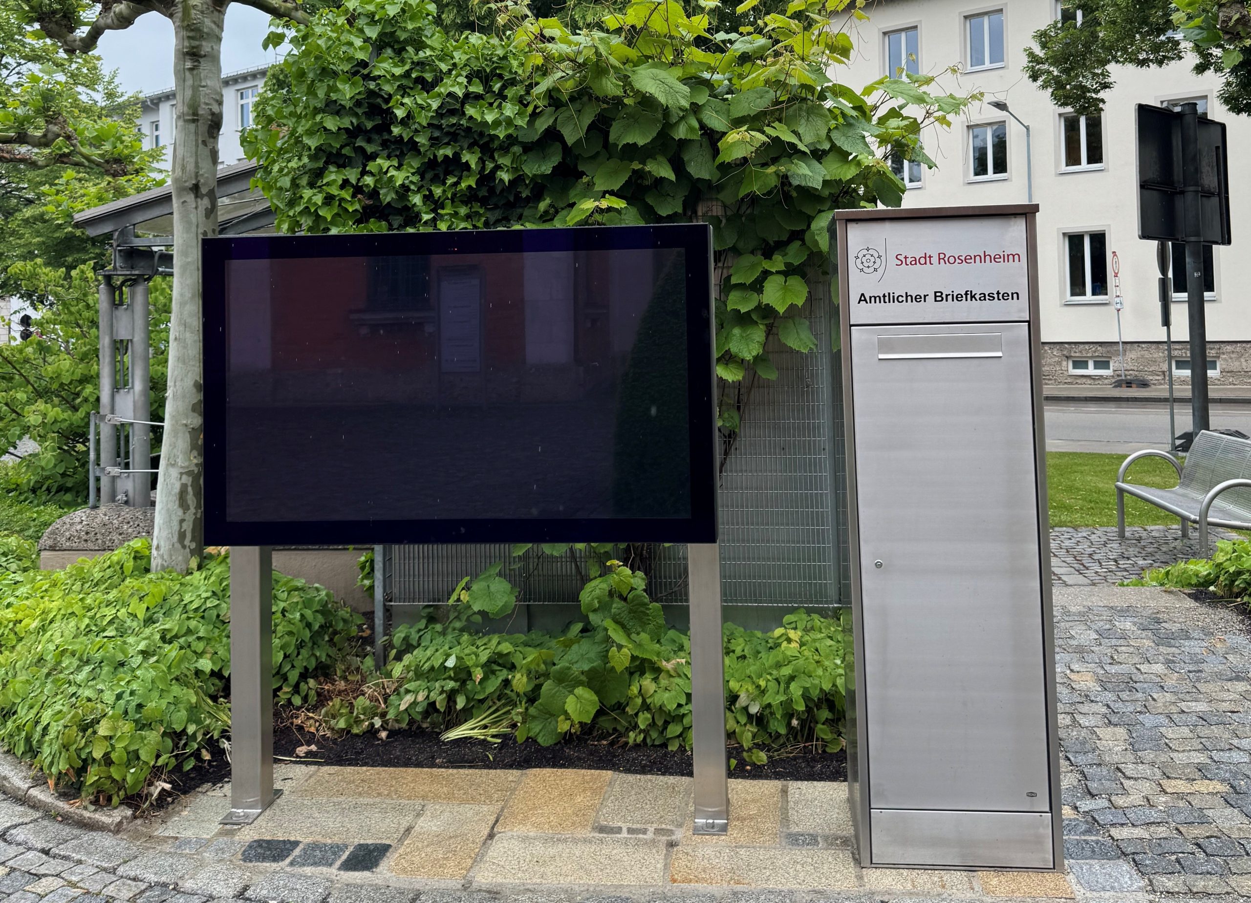 „Mit dem neuen Standort ist er nicht nur besser zu sehen, er hat auch ein größeres Volumen. Er ersetzt den alten, im Rathaus integrierten Briefkasten am Eingang an der Königstraße“; informiert die Stadt Rosenheim aktuell. Neben dem neuen amtlichen Briefkasten ist zudem eine digitale Anzeigetafel mit großem Touchscreen aufgestellt worden. Auf ihr werden künftig öffentliche Aushänge wie das Amtsblatt, Öffentlichkeitsbeteiligungen oder auch die Internetauftritte der Stadt Rosenheim rosenheim.de und rosenheim.jetzt für Verwaltungsangelegenheiten oder die Touristinfo angezeigt. Sie geht in den kommenden Tagen in Betrieb.