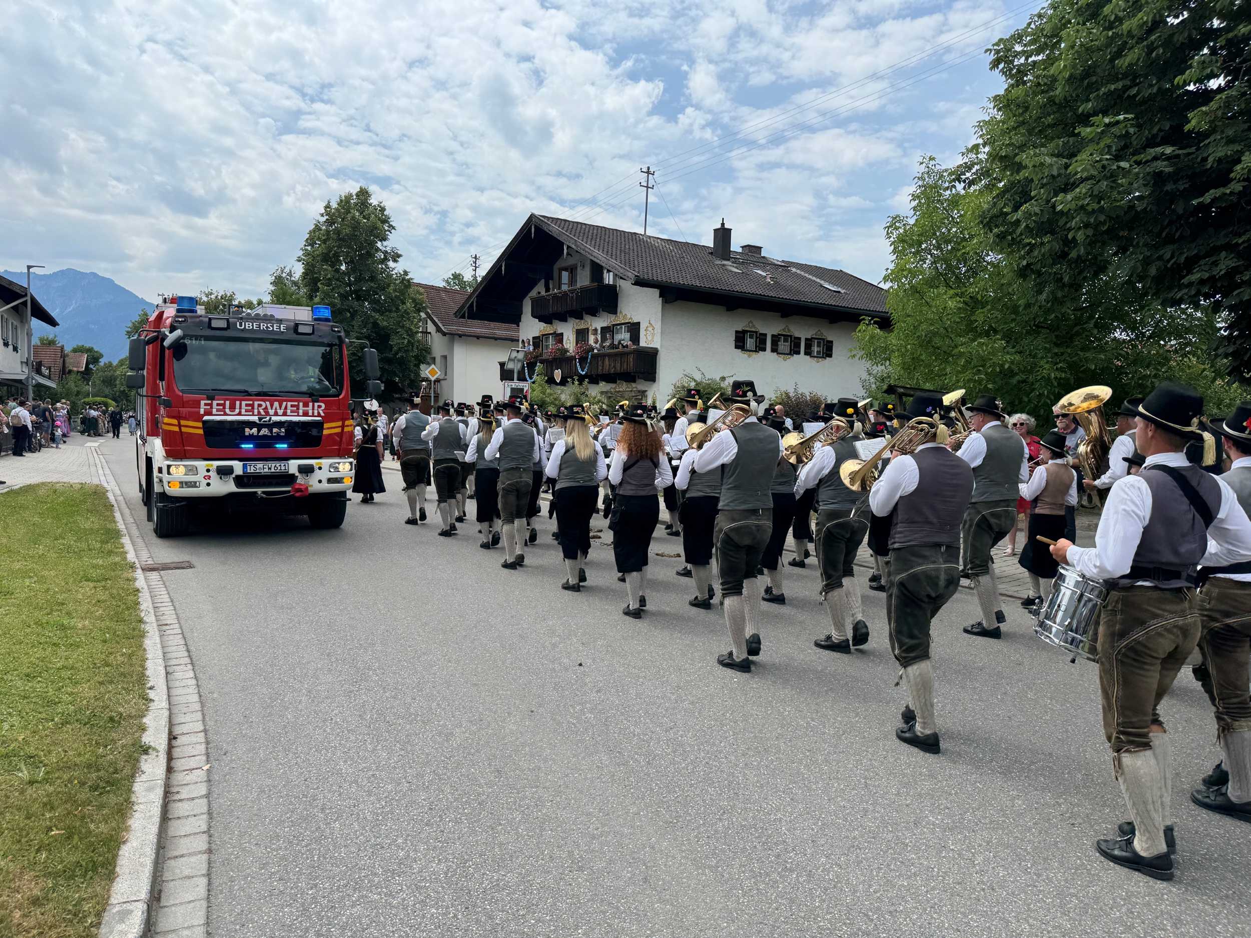 Neben 30 Floriansjüngern aus Übersee unterstützen jeweils weitere neunköpfige Fahrzeugbesatzungen aus Ruhpolding und Reit im Winkl die Einsatzkräfte vor Ort. Das Hauptaugenmerk der Feuerwehr lag in der Verkehrsabsicherung sowie dem Schutz des Festzuges, der durch den Ort führte. Rund 4.500 Musiker aus etwa 50 Kappellen und Zuschauer waren am Festsonntag in Übersee auf den Beinen, um gemeinsam das diesjährige Bezirksmusikfest zu feiern.