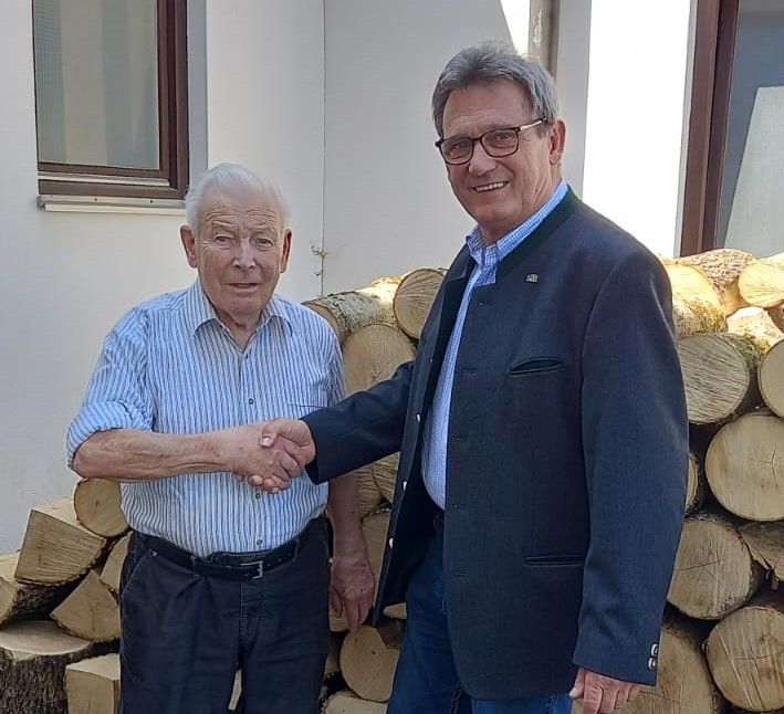 Brannenburg / Landkreis Rosenheim – Zum 95. Geburtstag von Josef Huber aus Brannenburg (Landkreis Rosenheim) machte Peter Moser, Obermeister der Schreiner-Innung Rosenheim, seine Aufwartung. Beide kennen sich bereits seit 1971, als der amtierende Obermeister in der Schreinerei Huber seine Ausbildung begann.