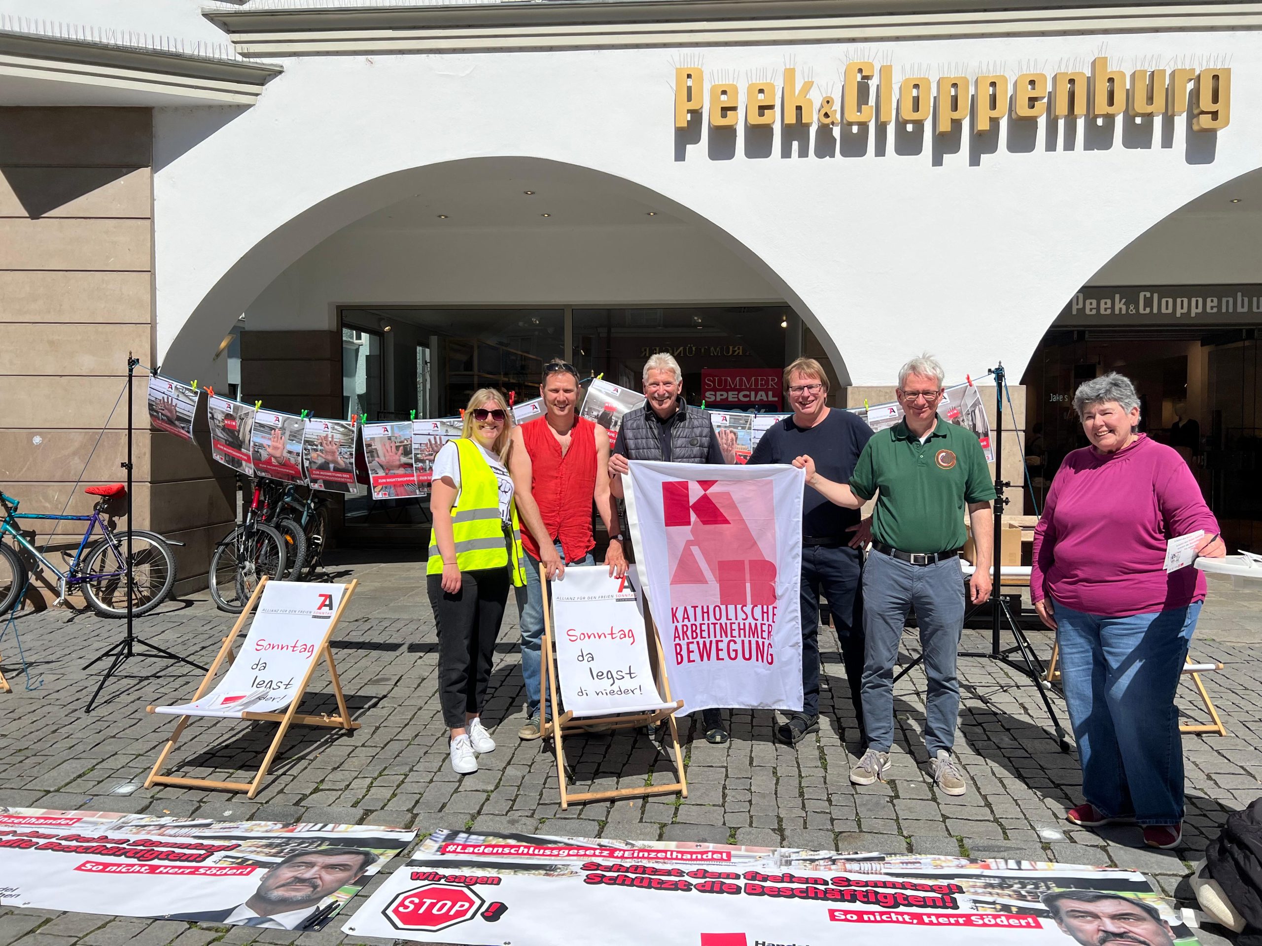 Rosenheim – Eine Aktion zum Sonntagsschutz fand am Samstag (30.5.2025) auf dem Max-Josefs-Platz in Rosenheim statt. Die Sonntagsallianz Rosenheim-Oberbayern machte dabei in Kooperation mit dem DGB Oberbayern und der KAB mit einer Unterschriftenaktion auf den neuen Entwurf des Ladenschlussgesetzes aufmerksam.