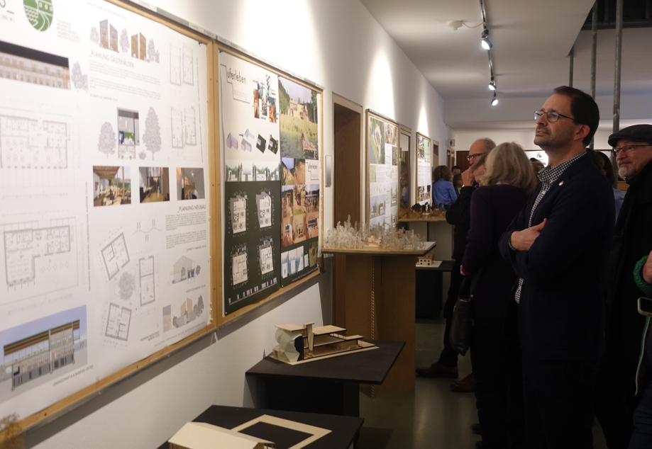 „Der Erhalt von Bestandsgebäuden in Hinblick auf Nachhaltigkeit, Klimaschutz und steigenden Preisen bei Rohstoffen spielt eine immer wichtigere Rolle“, das hörte man bei der Vernissage oft von Seiten der Masterstudierenden. Für das ehemalige „Seehotel Hubertus“ sahen sie unter diesem Gesichtspunkt großes Potenzial.