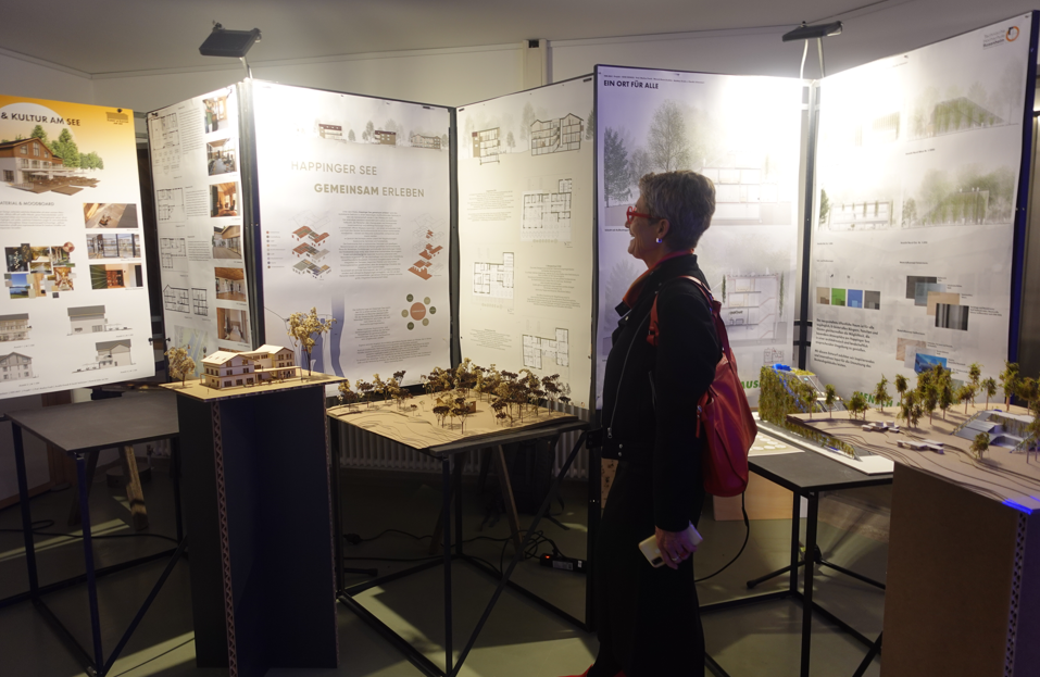 Weil der Stadt die finanziellen Mittel für das Projekt fehlen, will sie ein Erbbaurecht vergeben und damit einen privaten Investor mit ins Boot holen. Das wiederum gefällt nicht allen. Die Bürgerinitiative Happinger See startete eine Petition (wir berichteten) und bat schließlich bei der Suche nach Alternativen im August 2024 die Technische Hochschule Rosenheim, Vorschläge zu Abriss und Neubau auszuarbeiten – im Rahmen von Masterarbeiten der Fakultät Innenarchitektur (Bauen im Bestand).