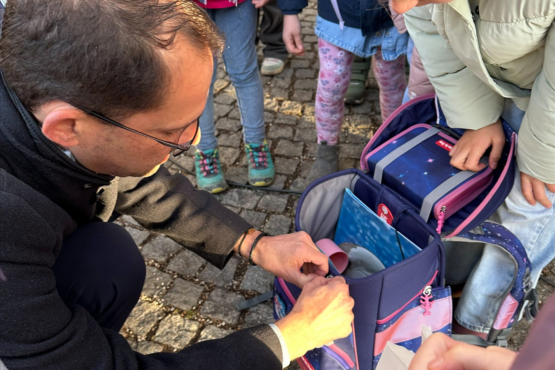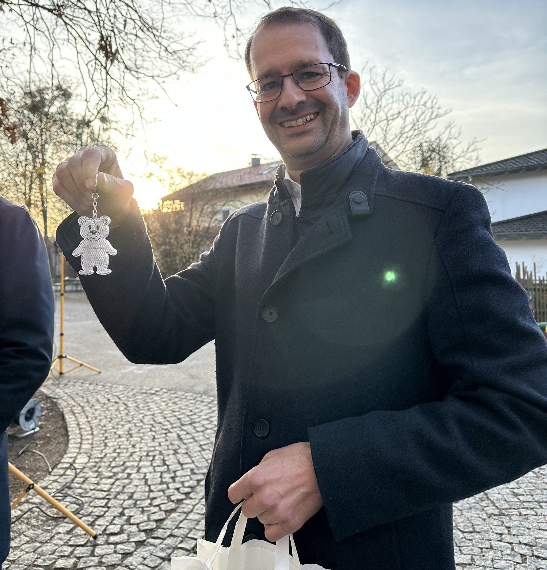 „Das Thema Schulwegsicherheit liegt mir besonders am Herzen – speziell bei den kleinsten Schülern. Diese Reflektoren sind wie Superhelden für Jacken und Ranzen. Wenn sie getragen werden, werden die Schulkinder von den anderen Verkehrsteilnehmern besser gesehen und sind sicherer unterwegs“ so Oberbürgermeister Andreas März bei der persönlichen Übergabe an der Grundschule Westerndorf-St. Peter.