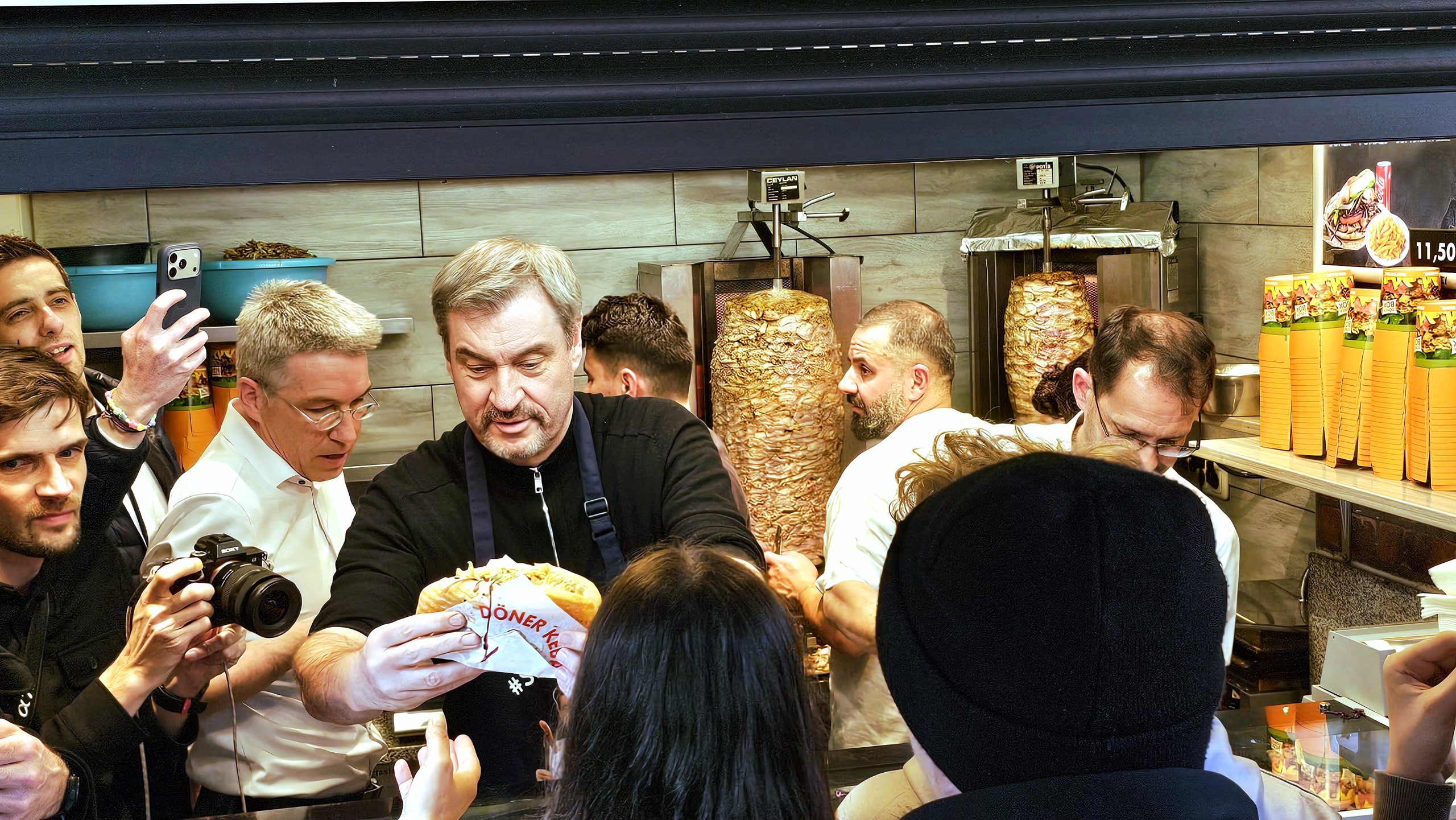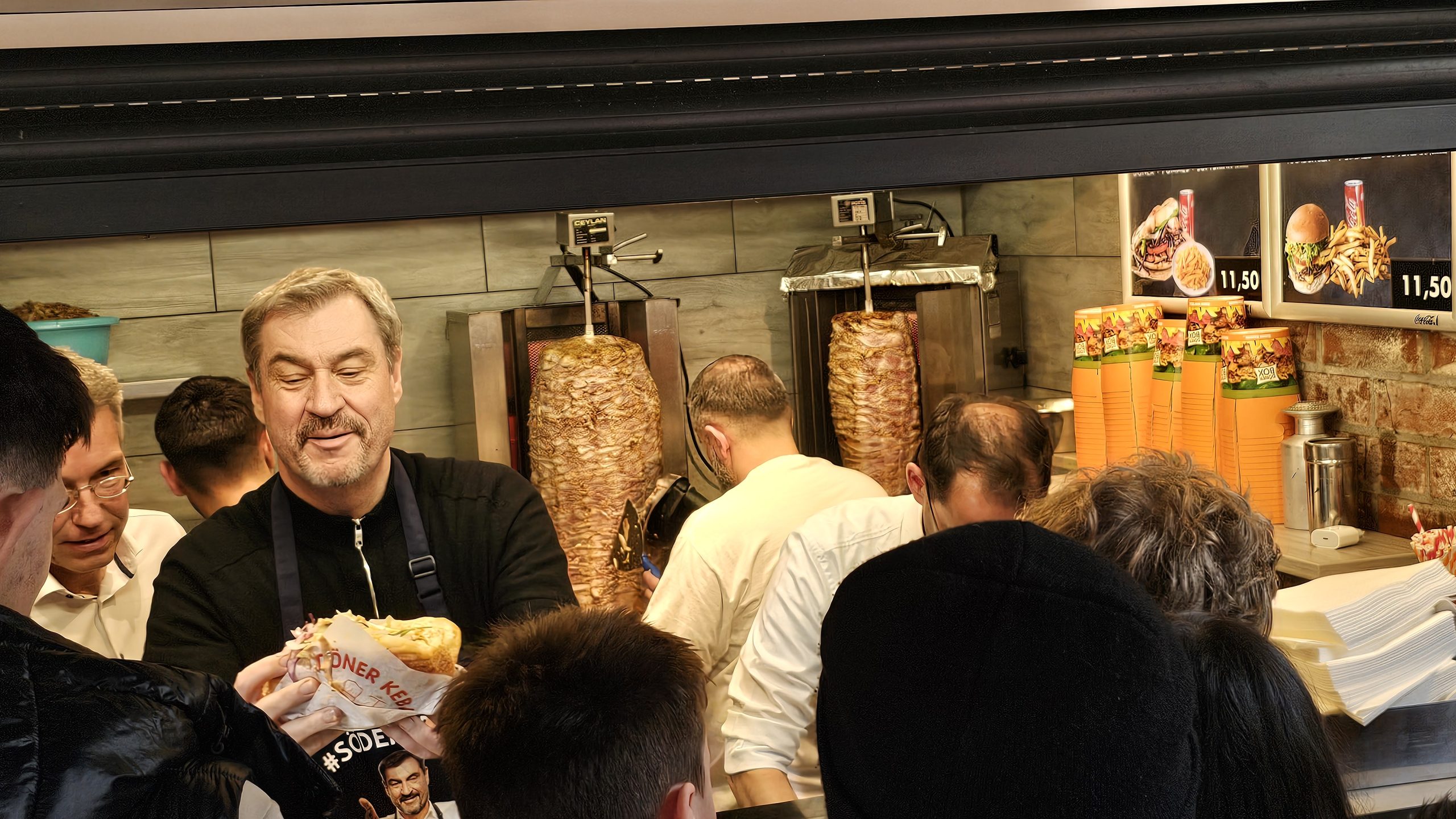 Dass der Ministerpräsident beim Essen fotografiert wird, hat mittlerweile Tradition. Unter dem Hashtag #Söderisst präsentiert sich Söder in den sozialen Netzwerken regelmäßig mit verschiedensten kulinarischen Spezialitäten. Besonders der Kebab scheint es ihm angetan zu haben.