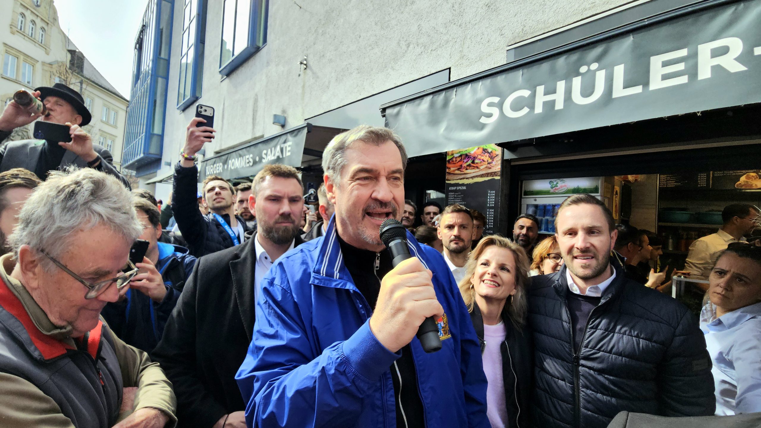 Beim Gang durch die Menge zeigte sich Söder gut gelaunt. „Döner macht schöner“, meinte er schmunzelnd – ein Spruch, der in der Menge für einige Lacher sorgte. Kaum war er angekommen, posierte er immer wieder mit den Besuchern, die ihre Smartphones in die Höhe hielten.