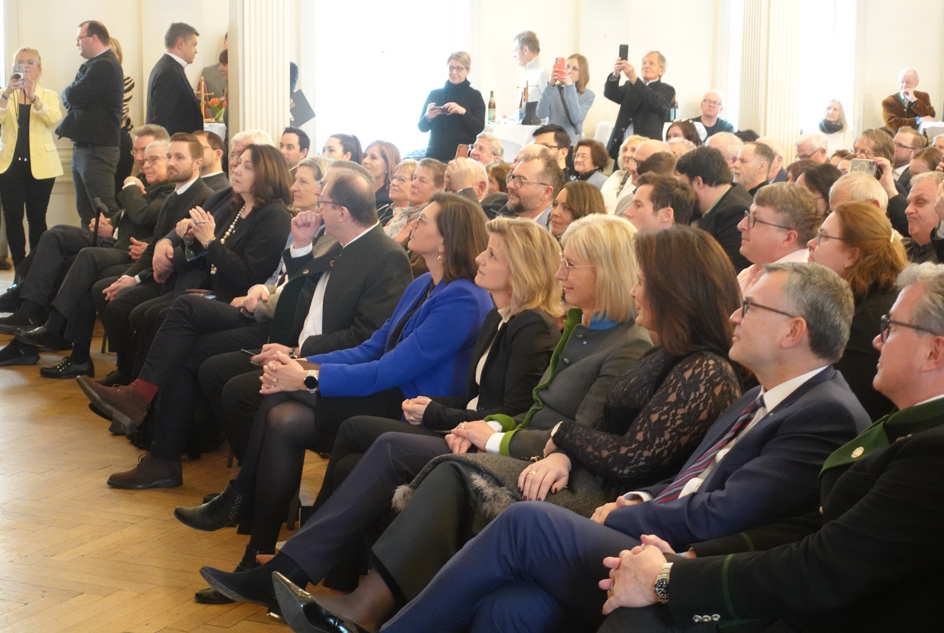 Zu offiziellen Eröffnung um 13.30 Uhr traf dann der bayerische Ministerpräsident pünktlich ein. Bejubelt und beklatscht von den Besuchern nahm er seinen Platz in der vordersten Reihe an.