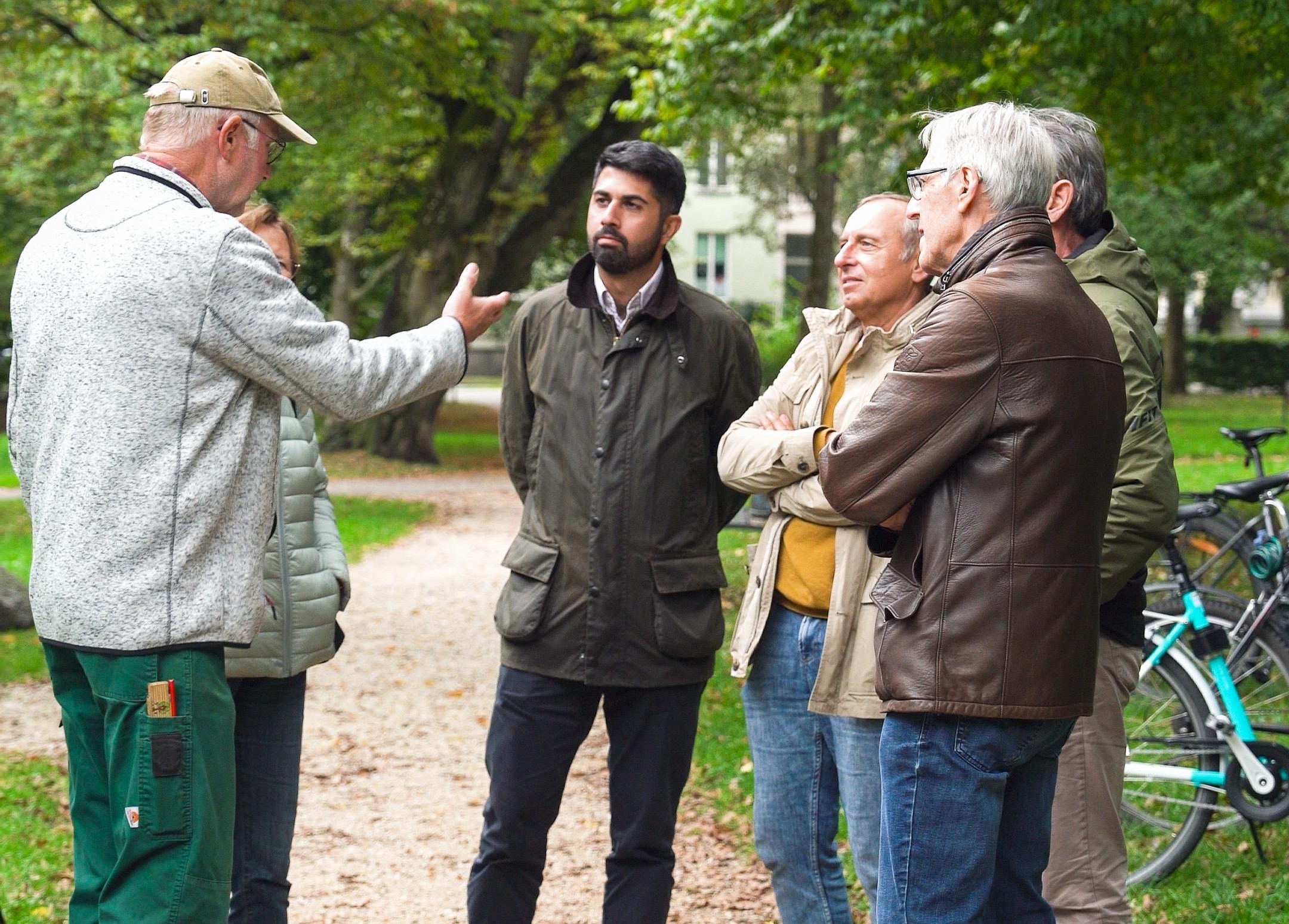 Gemeinsam mit dem Spielgerätebauer Mehrtens, 3. Bürgermeisterin Gabi Leicht und mehreren SPD-Stadträten hat Oberbürgermeisterkandidat Abuzar Erdogan den Spielplatz im Luitpoldpark besucht – gemeinsam mit „echten“ Experten: Kindern.