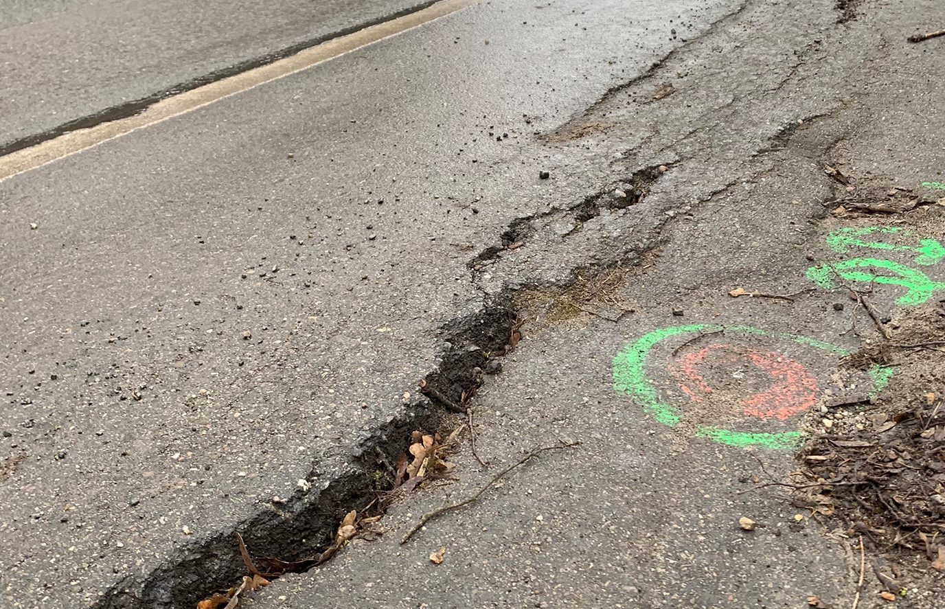 (Quelle: Pressemitteilung staatliches Bauamt Rosenheim / Beitragsbild: Zeigt die starken Setzungsrisse im Asphalt, die eine Stabilisierung notwendig machen. Copyright Staatliches Bauamt Rosenheim)