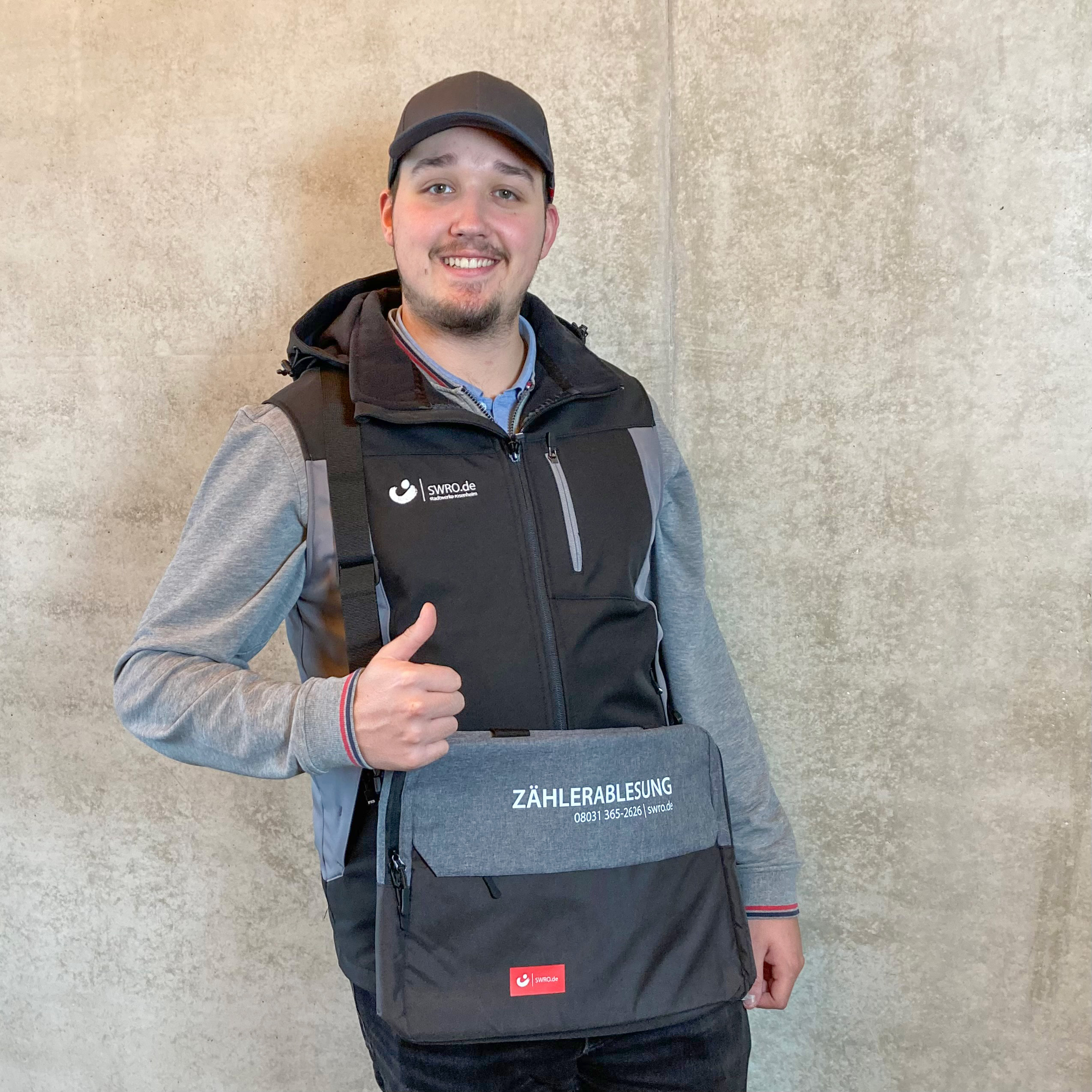Jeder Mitarbeiter führt einen Lichtbildausweis mit sich und ist bereits anhand seiner Kleidung und Tasche als Zählerableser der Stadtwerke Rosenheim (SWRO) erkennbar.