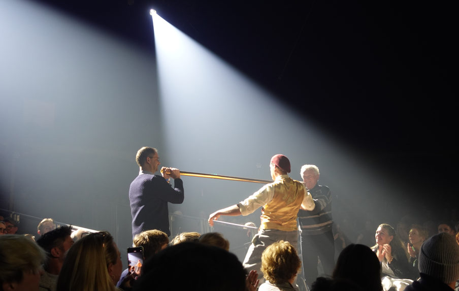 Dabei kam es zu einem der überraschendsten Momente des Abends: Unter den Zuschauern saß Fußballlegende Sepp Maier. Der ließ sich nicht lange bitten, folgte dem schrägen Vogel in die Manege und stellte sich selbst ins Rampenlicht. Später musste Rosenheims Oberbürgermeister Andreas März gemeinsam mit Maier sein Talent als Limbo-Tänzer unter Beweis stellen – sehr zur Freude des Publikums.