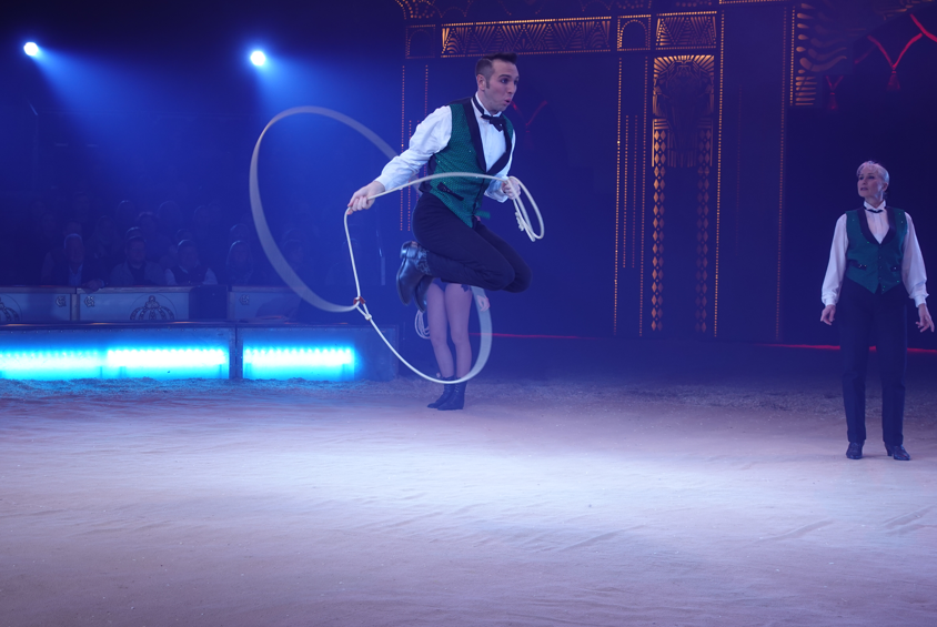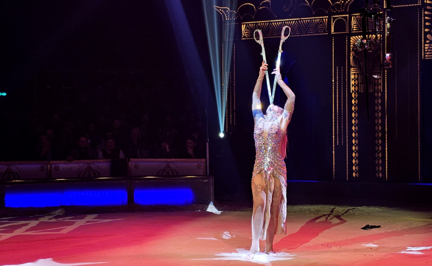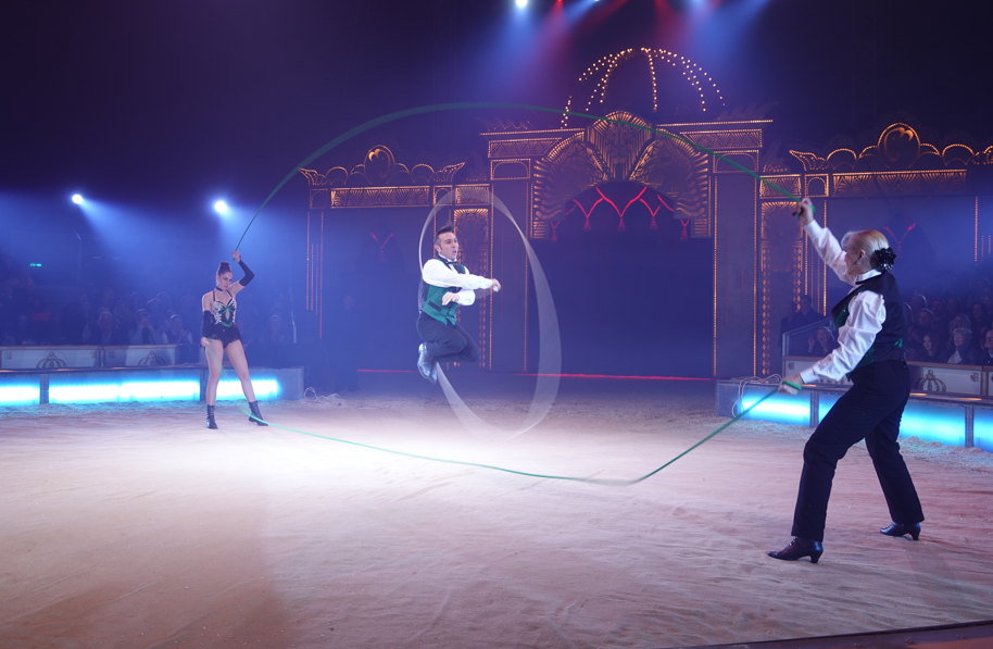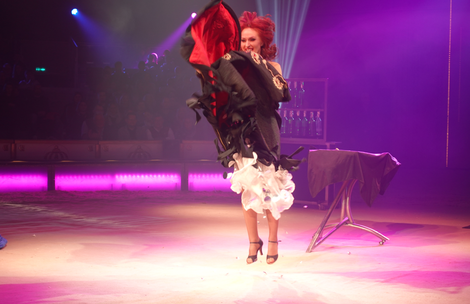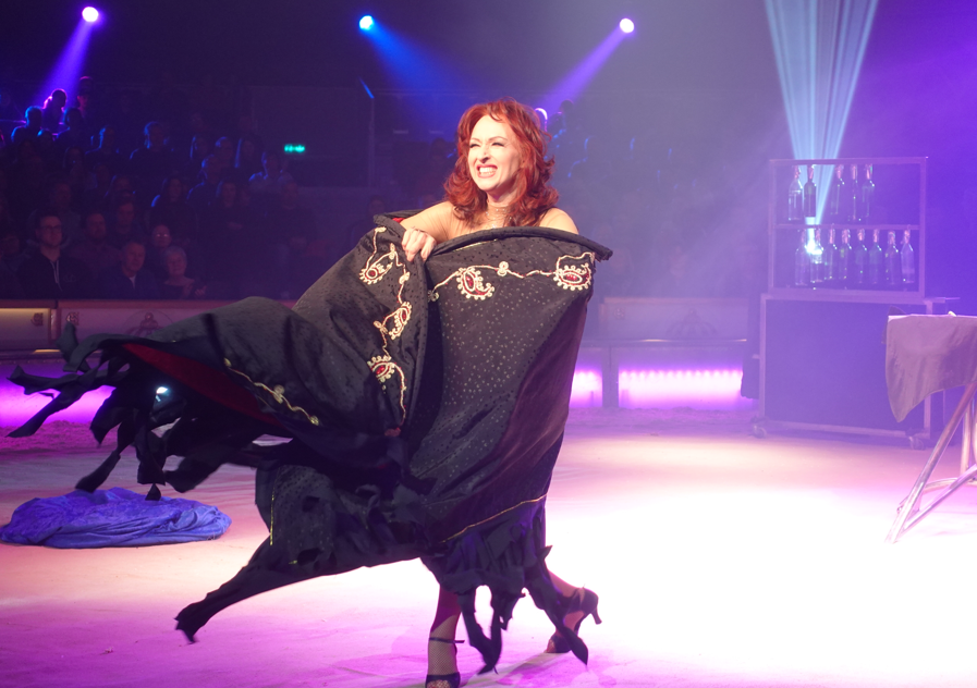 Ungläubige Blicke erntete die fliegende Schwertschluckerin Lucky Hell aus Australien. Bis zu 60 Zentimeter lange Schwerter führte sie sich in die Kehle ein – teils schwebend unter der Zirkuskuppel. Einige Zuschauer vermuteten zunächst einen Trick. Doch diese Zweifel räumte die Artistin schnell aus, als sie zusätzlich eine leuchtende Glasröhre schluckte und damit sichtbar machte, was in ihrem Inneren geschah.