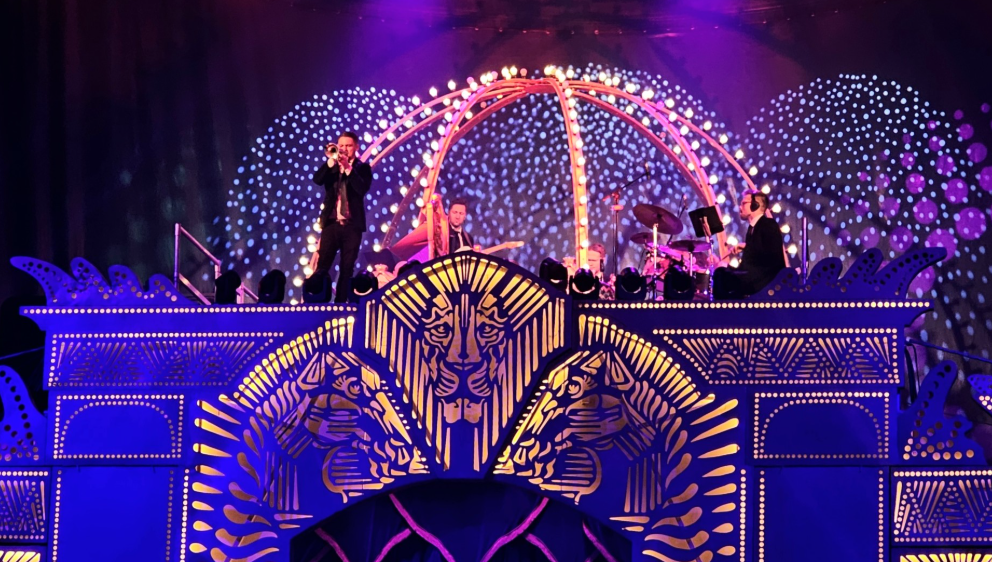 Schon vor dem Eingang kündigte sich an, was die Besucher im Zirkuszelt erwartete: beleuchtete Weihnachtsbäume, funkelnde Lichter und festliche Stimmung. Als die Lichttechnik denk Fokus dann auf die Manege lenkte und die Liveband mit „Jingle Bells“ den Abend eröffnete, war das Publikum sofort mittendrin im Zauber des 2. Rosenheimer Weihnachtszirkus.