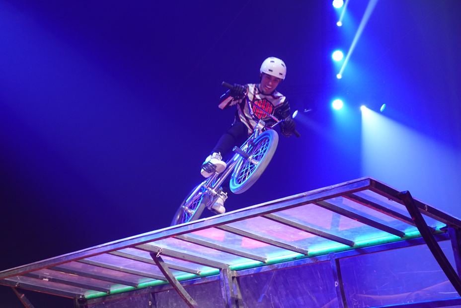 Neben traditionellen Zirkusnummern wie einer einfühlsamen Pferdedressur setzte Circus Krone in diesem Jahr stark auf zeitgemäße Darbietungen. Besonders das junge Publikum zeigte sich fasziniert, als fünf Athleten aus Kolumbien nach der Pause die Manege in einen BMX-Stuntpark verwandelten. Mit Rampen, Podesten und Halfpipes tanzten sie förmlich auf ihren Rädern, sprangen synchron zu zweit, zu viert oder im Fünferpack. Der Höhepunkt: ein doppelter Frontflip, in der Zirkuswelt als Salto Mortale bekannt.