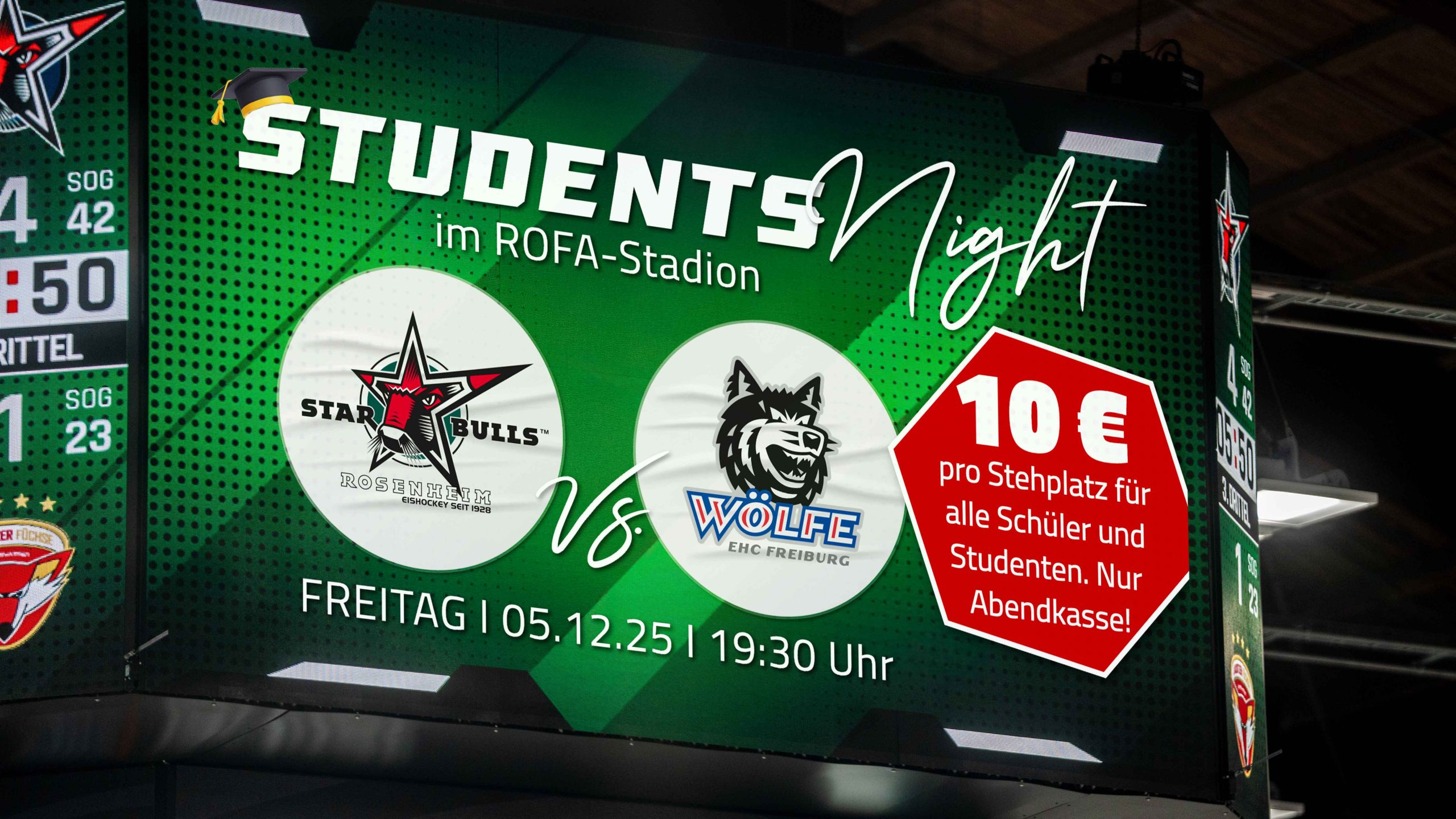 Rosenheim – Die Starbulls Rosenheim laden am kommenden Freitag zur Students Night ins ROFA-Stadion ein. Beim Heimspiel gegen die Freiburger Wölfe profitieren Schüler und Studenten von einem exklusiven Angebot: Stehplatzkarten gibt es an der Abendkasse gegen Vorlage eines gültigen Schülerausweises für nur 10 Euro.