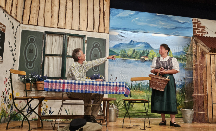 Für die Aufführung wurde auch das Bühnenbild komplett neu gestaltet. Lisa Smettan zeichnete für die künstlerische Umsetzung verantwortlich. Anders als bei vielen anderen Stücken spielt ein Großteil der Handlung diesmal quasi im „Freien“ – um genau zu sein vor dem Anwesen der Familie Pointner, mit gemütlichem Außensitzeck, kleinem Stadel und idyllischem Blick auf den See. Alles ist liebevoll und detailreich umgesetzt.