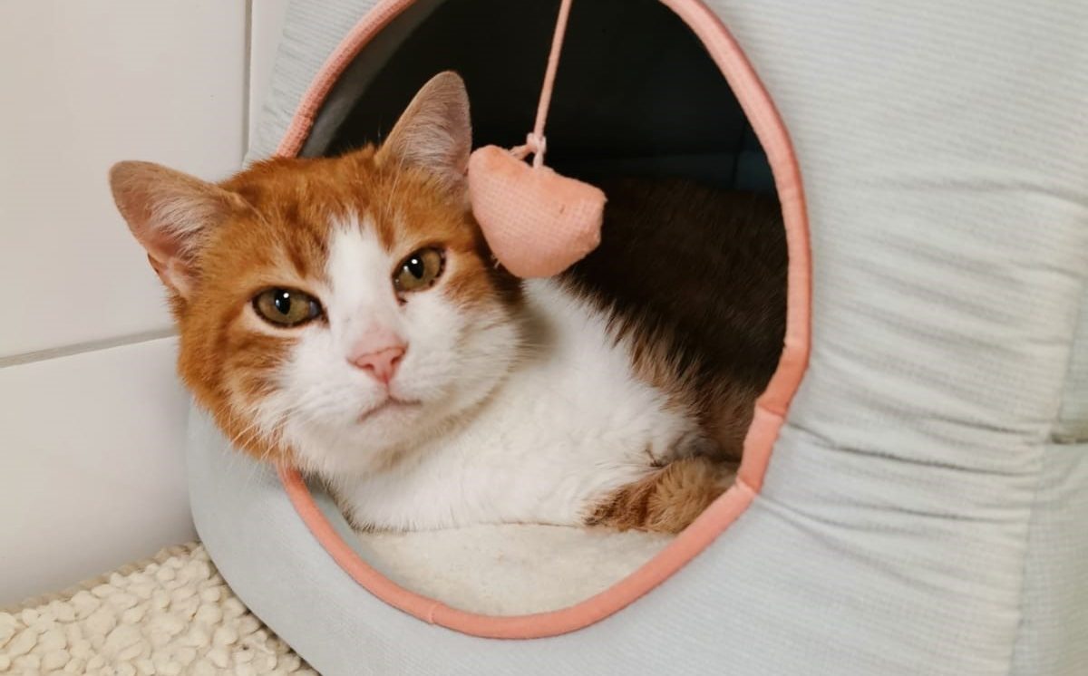 Der Kater ist sehr menschenbezogen und verschmust. Mit seinem rot-weißen Fell und seinen bernsteinfarbenen Augen erobert er jedes tierliebende Menschenherz im Sturm.