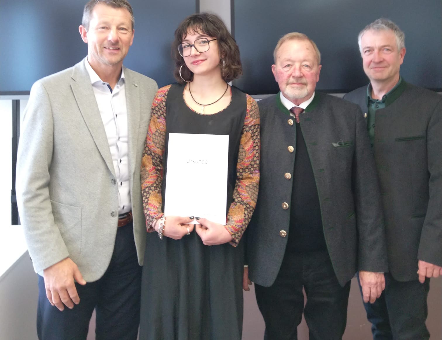 Griesstätt / Landkreis Rosenheim – Henriette-Luise Pfeil hat ihre Lehre im Bäckerhandwerk mit hervorragender Leistung abgeschlossen. Sie verkürzte ihre Lehrzeit und erzielte einen Einser-Schnitt, was ihr zusätzlich die Auszeichnung zum Staatspreis einbrachte.