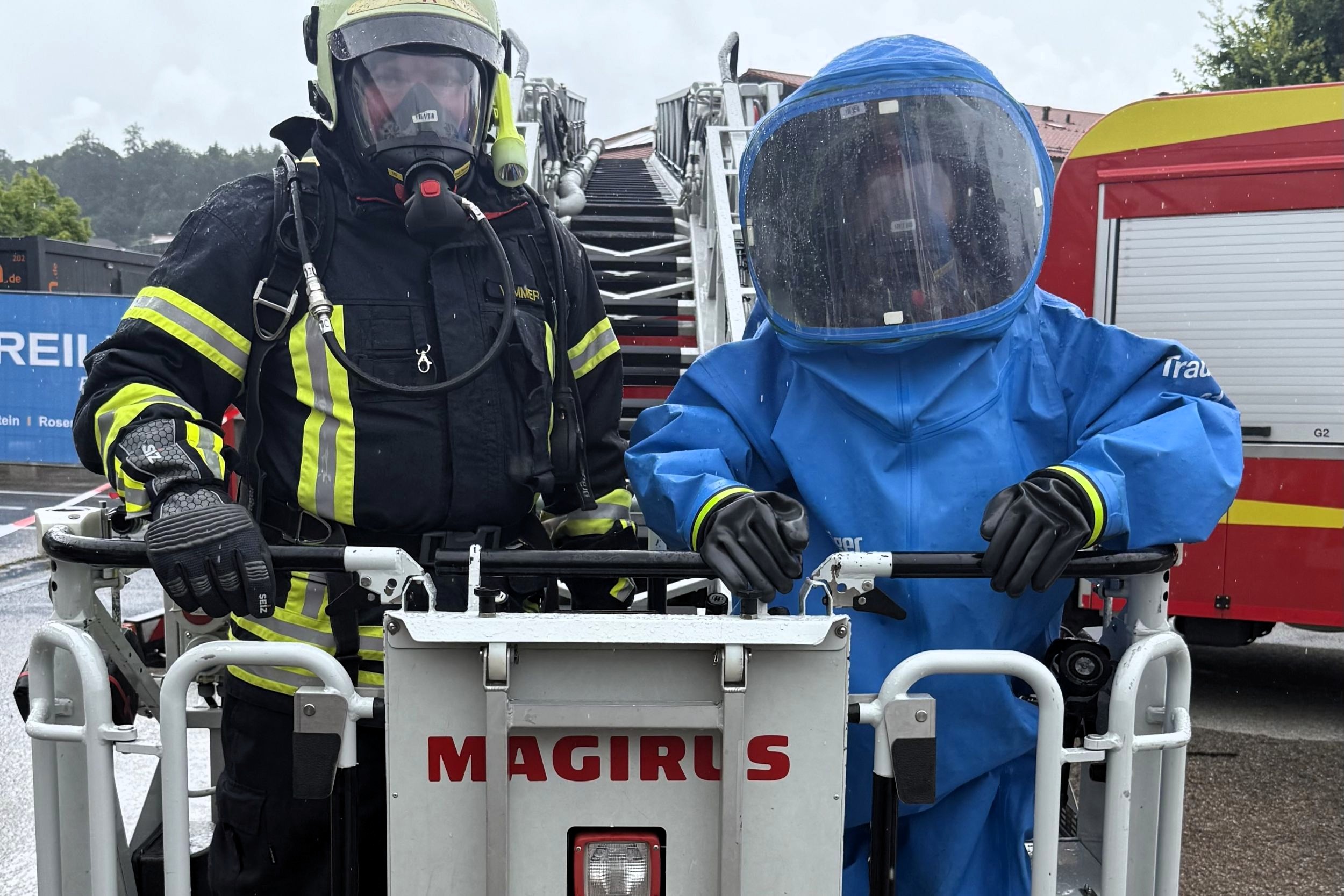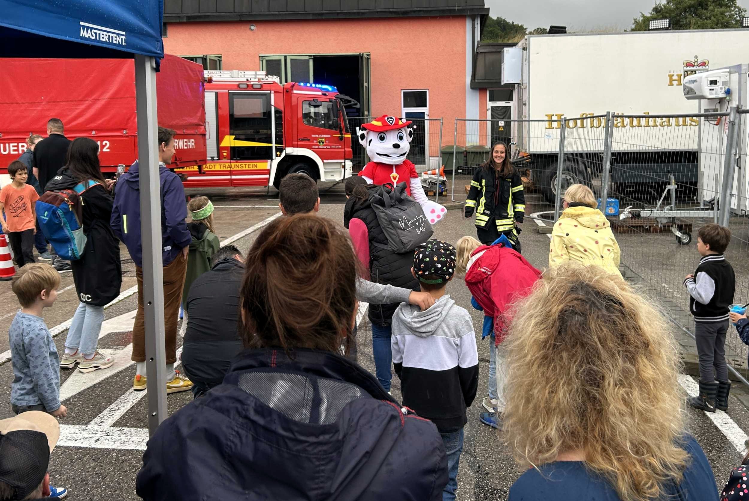 „Wasser Marsch“ lautete duzende Male der Befehl beim Schlauchwettrennen. Mit einem C-Strahlrohr konnten dort zwei rollende Feuerwehrautos entlang einer Rennstrecke geschoben werden. Für leuchtende Augen sorgte auch der Besuch von „Marshall“ von der Kinderserie „Paw Patrol“. Für Aufsehen sorgten auch die „Feuerwehrmodells auf dem Laufsteg“. Sie präsentierten verschiedene Schutzausrüstungen wie Chemikalienschutzanzüge, die Atemschutzausrüstung oder auch die „Imker-Ausrüstung“.