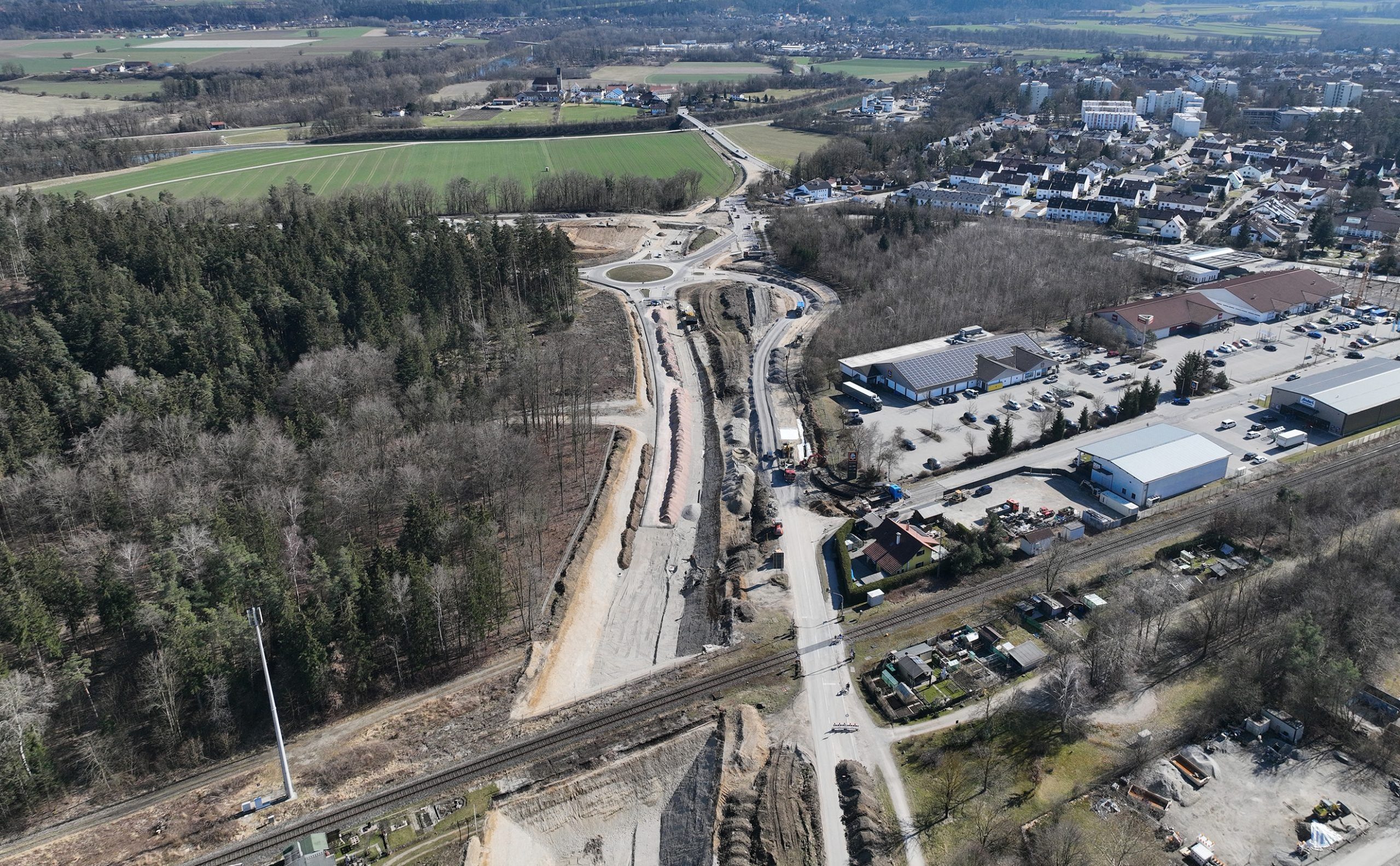 Gleichzeitig laufen in dieser Bauphase die Streckenbauarbeiten an der St 2091, zwischen Innkanal und der alten Pürtener Kreuzung sowie in der Kraiburger Straße. Außerdem schreiten die Arbeiten am zweiten Bauwerk, der späteren Eisenbahnbrücke im Bereich des Bahnübergangs, weiter voran.