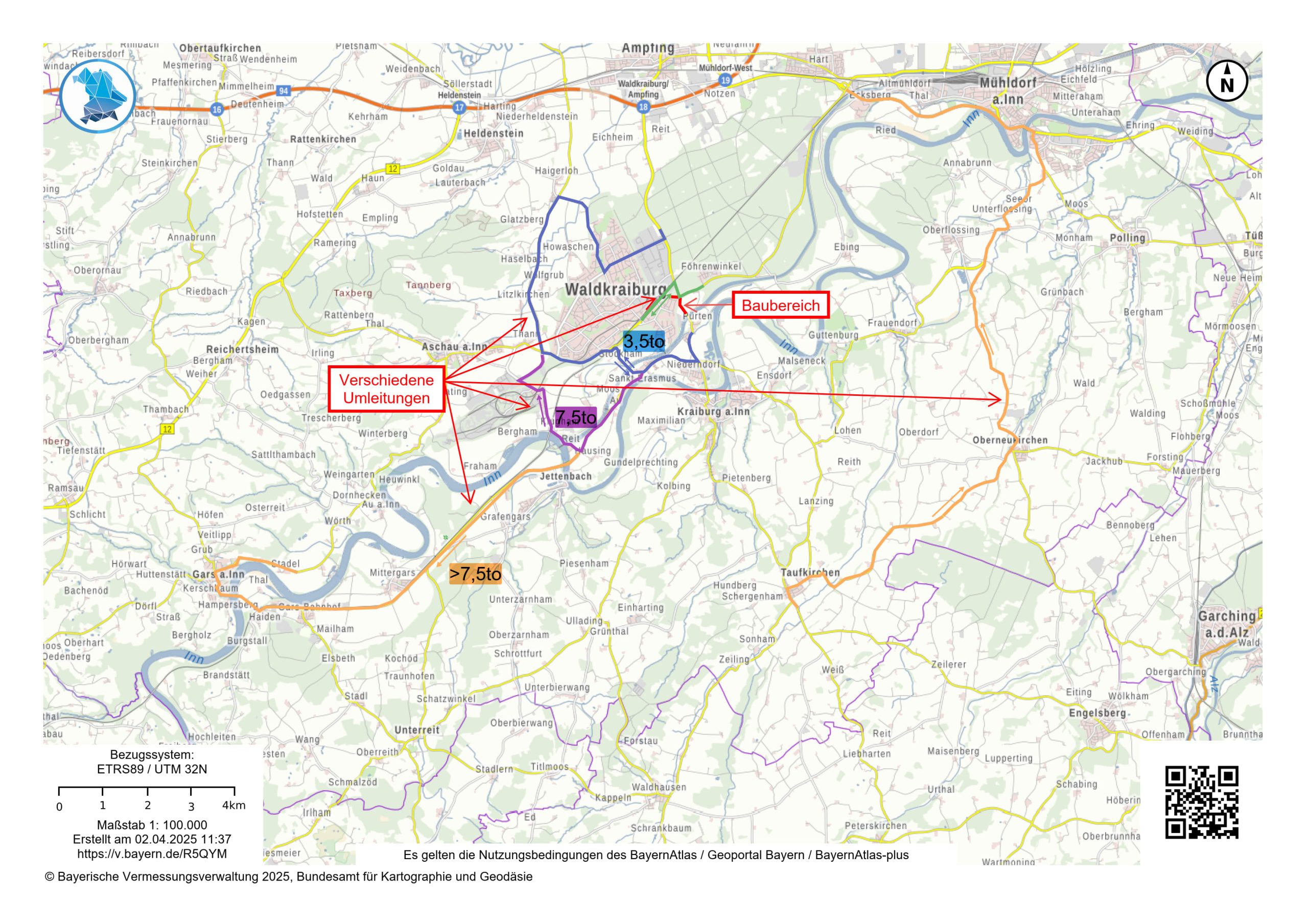 Damit diese ganzen Arbeiten reibungslos ablaufen können, muss der gesamte Bereich zwischen Innkanal und neuer Bahnhofstraße sowie die Kraiburger Straße im Baubereich für den Verkehr gesperrt werden. Damit der Verkehr trotzdem sicher läuft, sind verschiedene Umleitungen nötig.