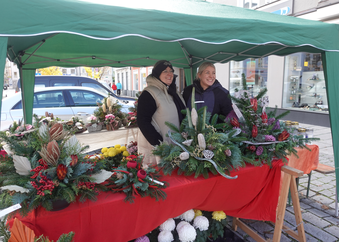 Früher nutzten die Rosenheimer den letzten Sonntag vor Allerheiligen, um neue Mäntel oder Grabschmuck zu kaufen. Heute ist der Name „Mantelsonntag“ eher Tradition: Grabschmuck ist nur an zwei Ständen zu finden – trotzdem zeigte sich eine Standbetreiberin zufrieden: „Das Interesse an den Gestecken ist wieder groß; solange es den Markt gibt, sind wir gern dabei.“