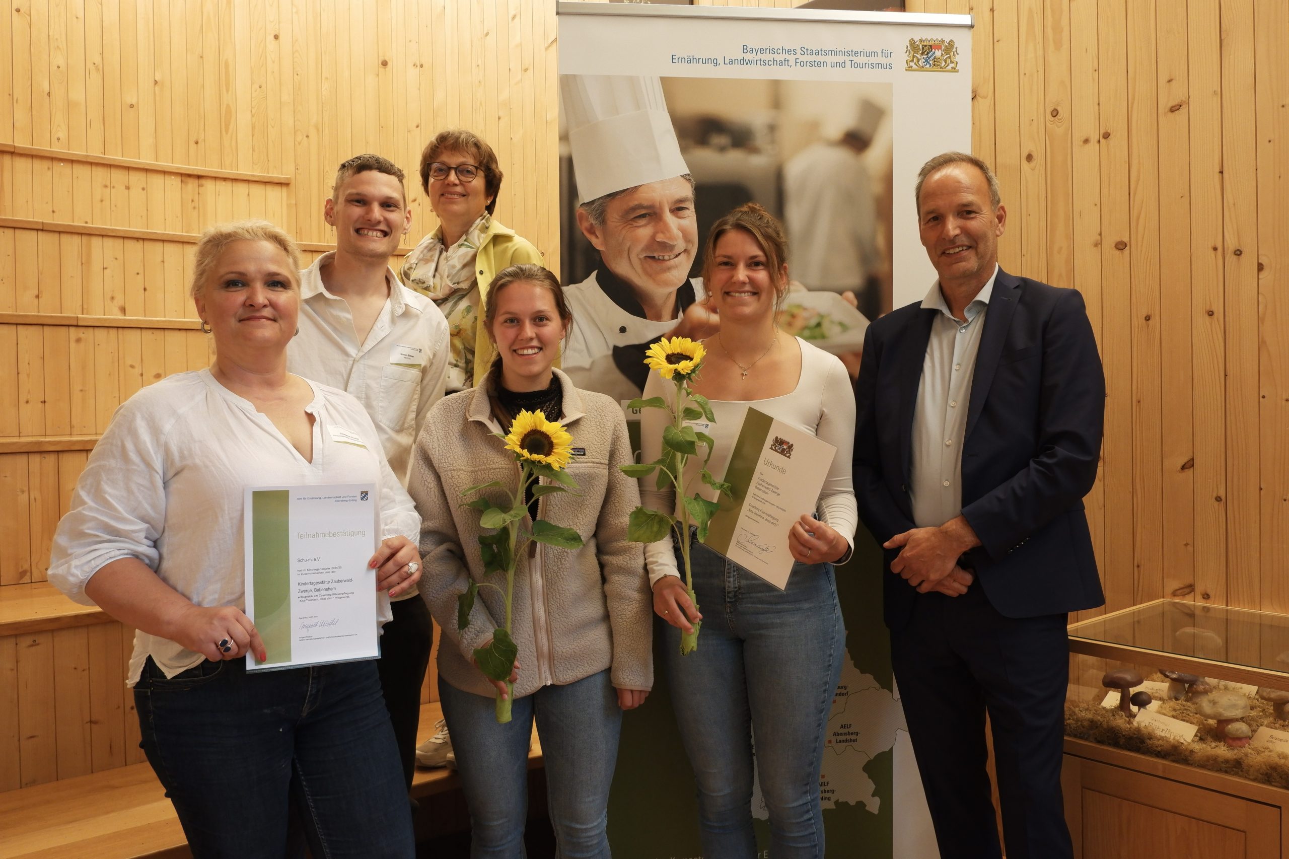 Der feierliche Abschluss des Coachings fand im Walderlebniszentrum Grünwald statt. Organisiert wurde das Programm von der Vernetzungsstelle Kita- und Schulverpflegung Oberbayern Ost am Amt für Ernährung, Landwirtschaft und Forsten Ebersberg-Erding (AELF).