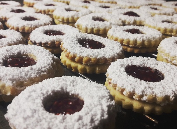 Als Beispiel haben wir das beliebte Klassiker-Rezept für Spitzbuben genommen – eine der beliebtesten Sorten in der Adventszeit. Rund 40 Stück ergeben sich aus: