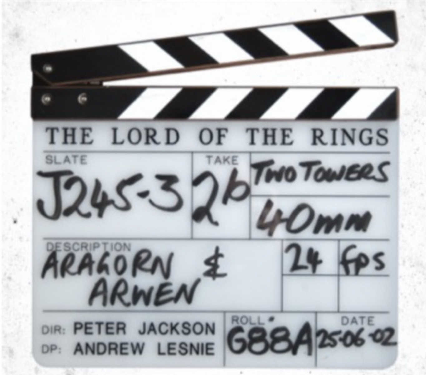 (Eine Filmklappe aus Herr der Ringe die zwei Türme, aus der Sammlung von Jan Eric Hauber Copyright Jan Eric Hauber)